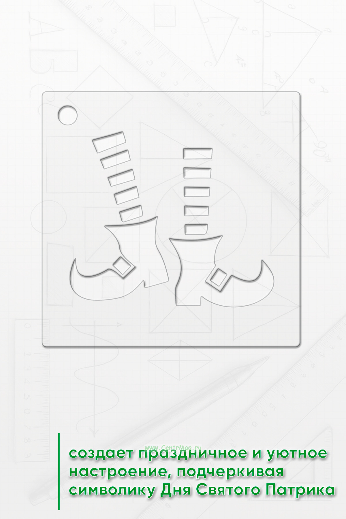 Трафарет создает праздничное и уютное настроение, подчеркивая символику Дня Святого Патрика.