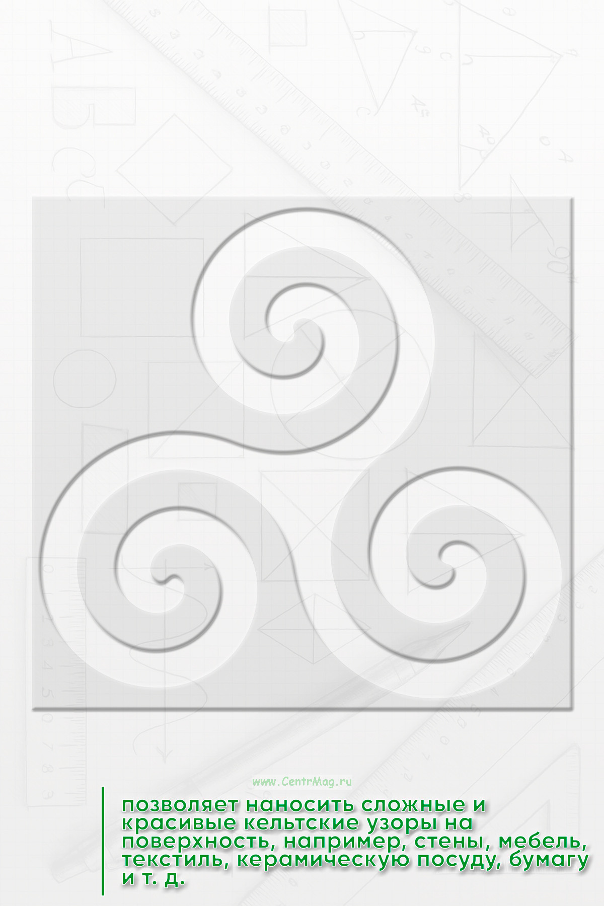 Позволяет наносить сложные и красивые кельтские узоры на поверхность, например, стены, мебель, текстиль, керамическую посуду, бумагу и т. д.