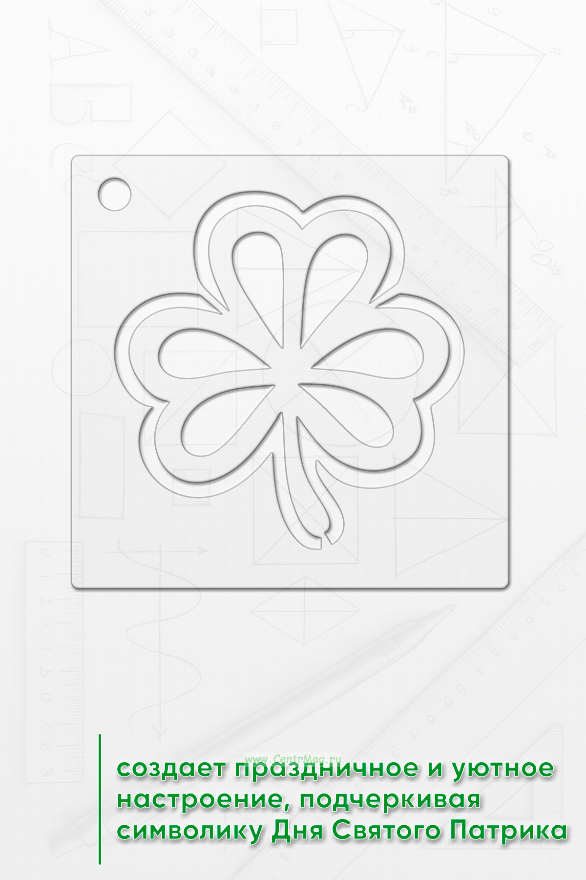 Трафарет создает праздничное и уютное настроение, подчеркивая символику Дня Святого Патрика.