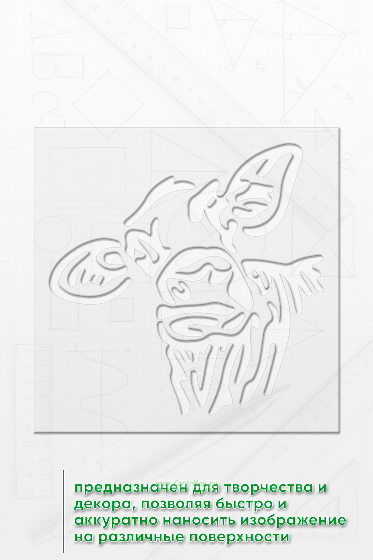 Трафарет предназначен для творчества и декора, позволяя быстро и аккуратно наносить изображение на различные поверхности. Подходит для создания декора на одежде, мебели, стенах, оформления блокнотов и открыток, а также для тематических плакатов и постеров.