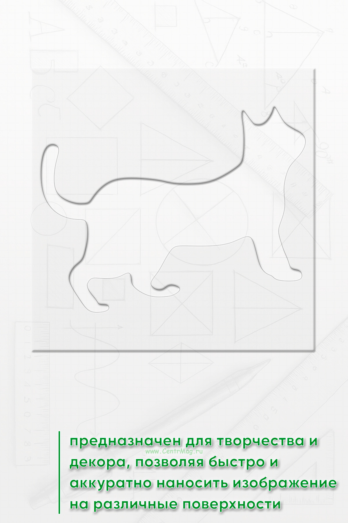 Трафарет предназначен для творчества и декора, позволяя быстро и аккуратно наносить изображение на различные поверхности. Подходит для создания декора на одежде, мебели, стенах, оформления блокнотов и открыток, а также для тематических плакатов и постеров.