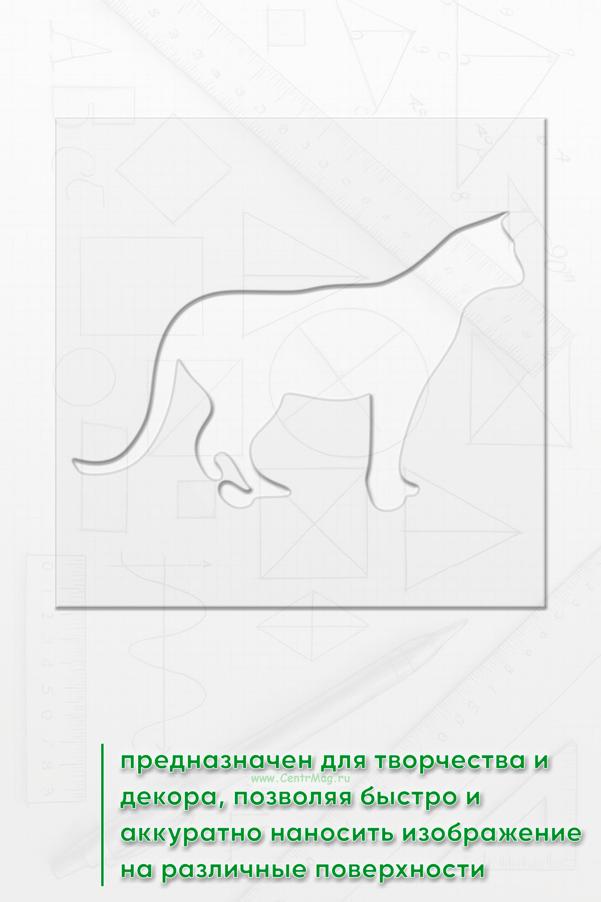 Трафарет предназначен для творчества и декора, позволяя быстро и аккуратно наносить изображение на различные поверхности. Подходит для создания декора на одежде, мебели, стенах, оформления блокнотов и открыток, а также для тематических плакатов и постеров.