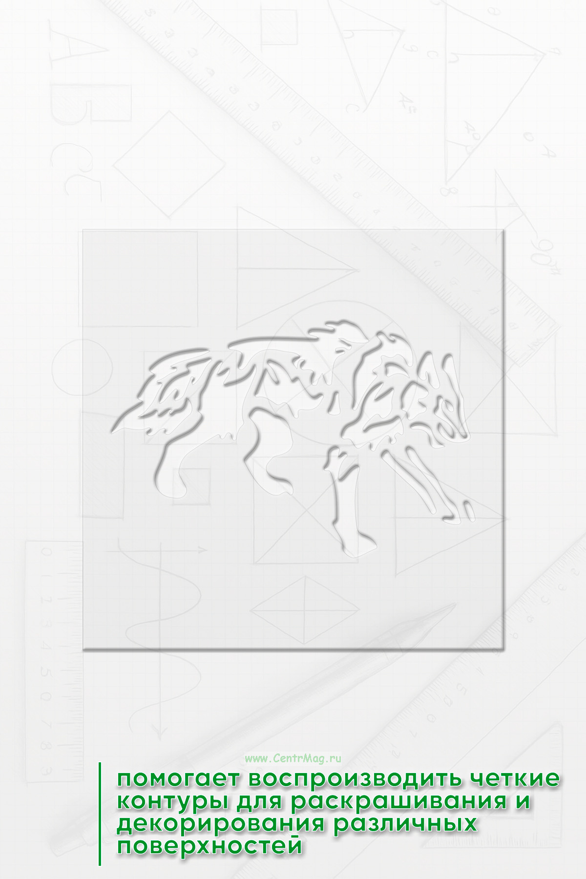 Трафарет предназначен для оформления декоративных элементов, аппликаций и рукоделия. Он помогает воспроизводить четкие контуры для раскрашивания, декорирования или украшения различных поверхностей.