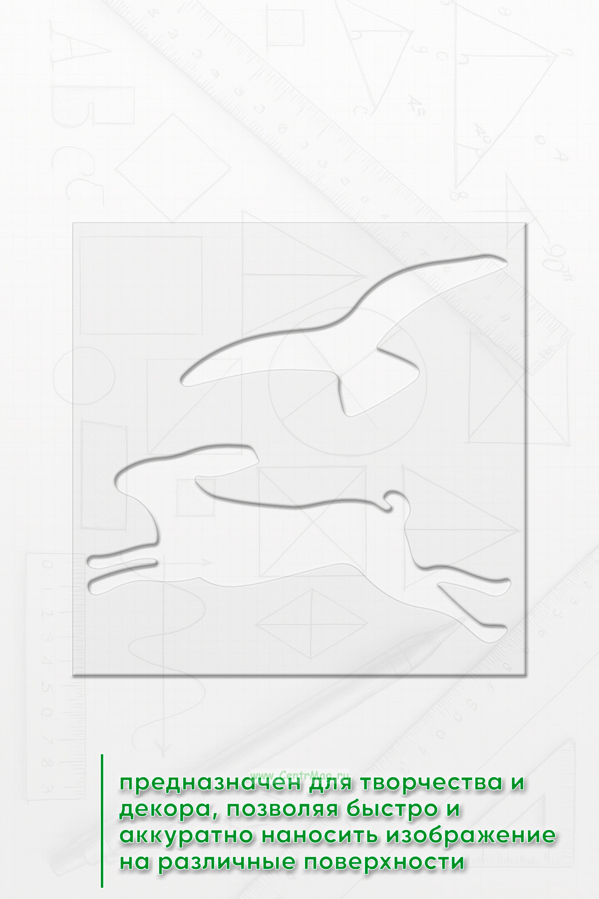 Трафарет предназначен для творчества и декора, позволяя быстро и аккуратно наносить изображение на различные поверхности. Подходит для создания декора на одежде, мебели, стенах, оформления блокнотов и открыток, а также для тематических плакатов и постеров.