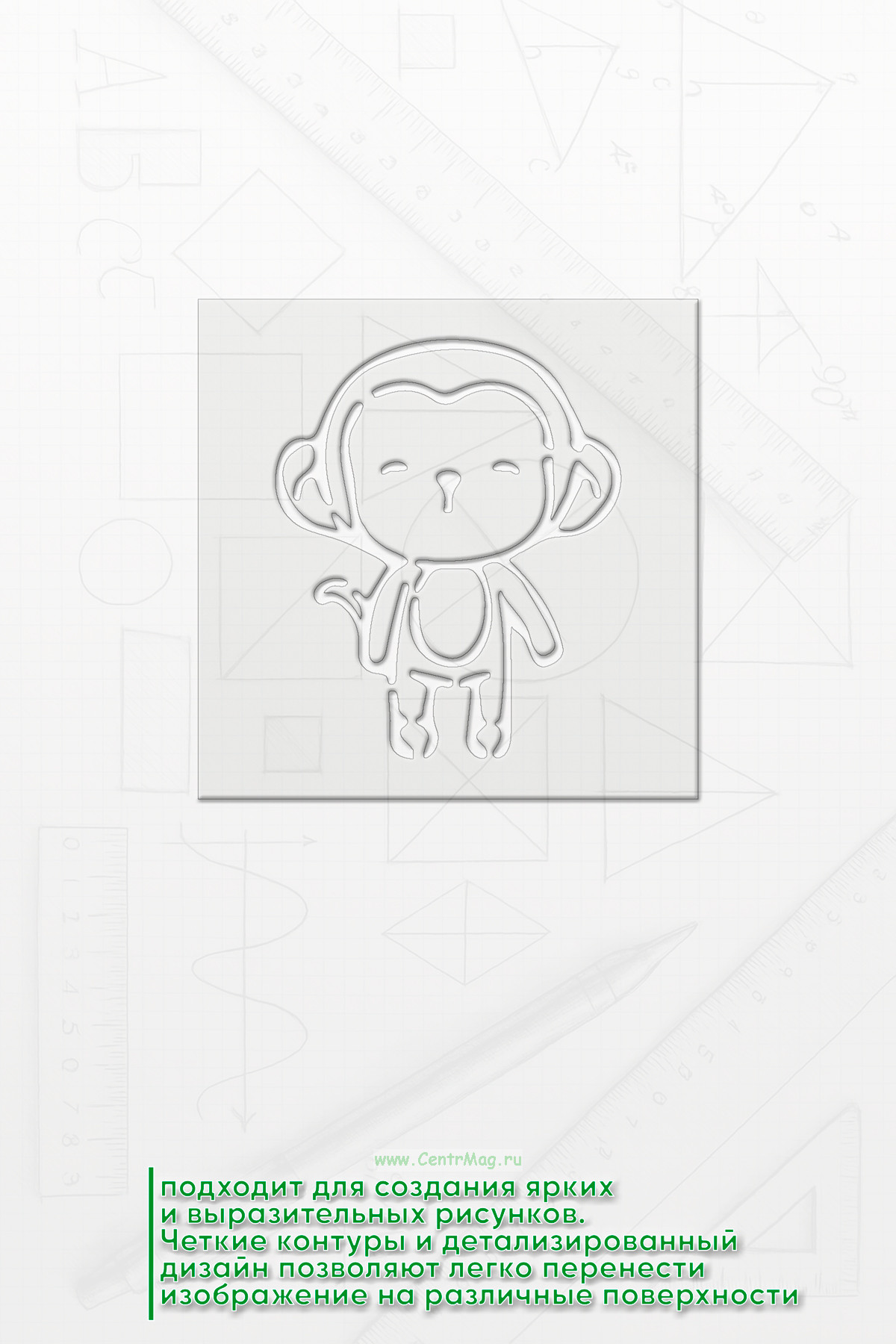 Трафарет идеально подходит для создания ярких и выразительных рисунков. Четкие контуры и детализированный дизайн позволяют легко перенести изображение на различные поверхности. Станет отличным инструментом для творчества, декора и образовательных проектов.