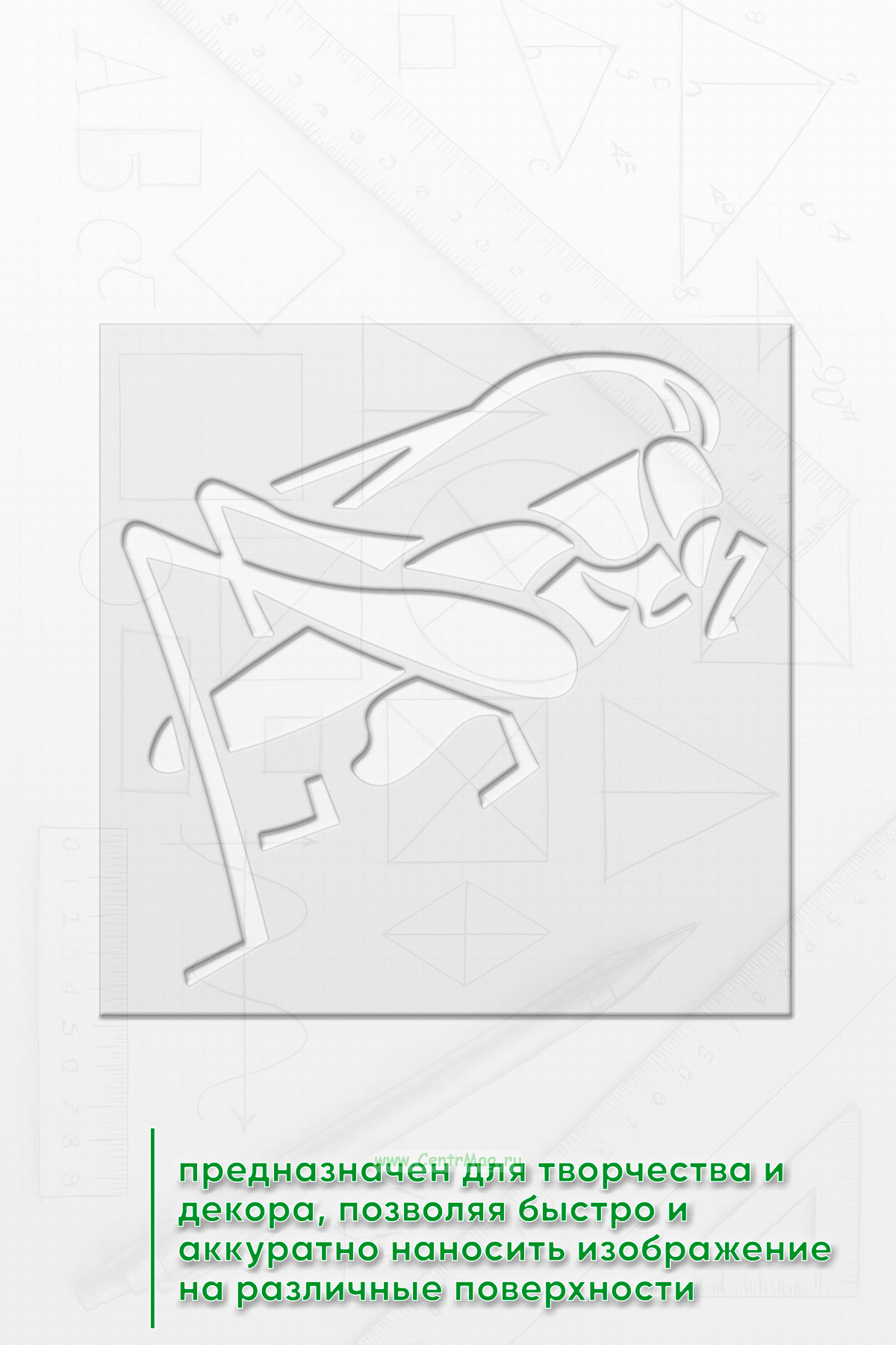 Трафарет предназначен для творчества и декора, позволяя быстро и аккуратно наносить изображение на различные поверхности. Подходит для создания декора на одежде, мебели, стенах, оформления блокнотов и открыток, а также для тематических плакатов и постеров.