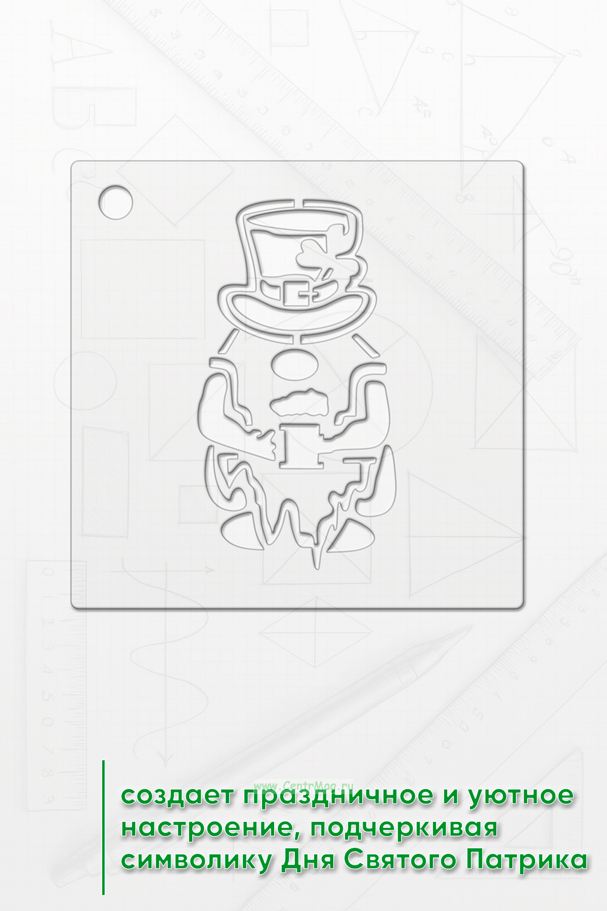 Трафарет создает праздничное и уютное настроение, подчеркивая символику Дня Святого Патрика.