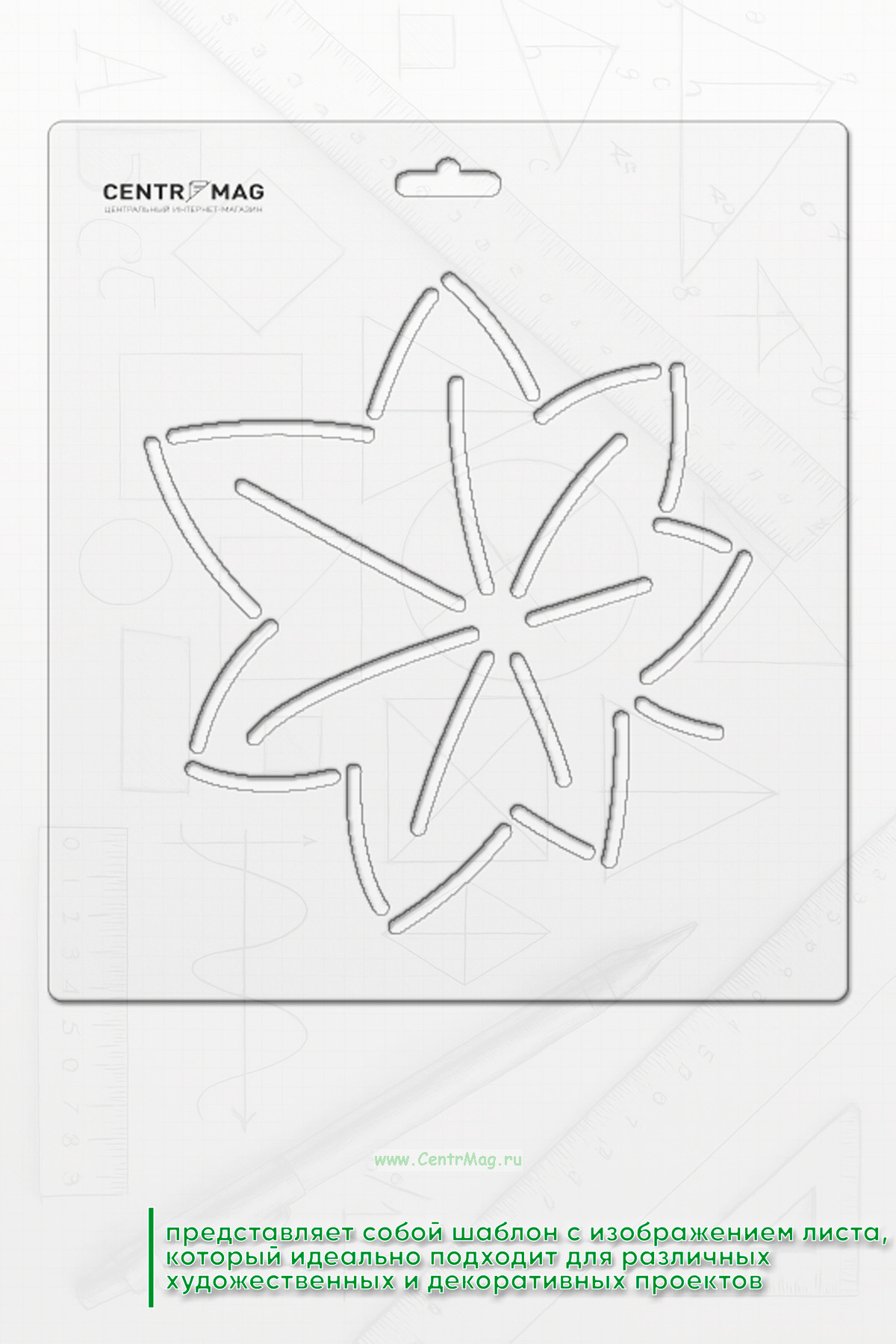 Трафарет представляет собой шаблон с изображением листа, который идеально подходит для различных художественных и декоративных проектов. Он выполнен в простом, но элегантном дизайне, что позволяет легко использовать его как для новичков, так и для опытных мастеров