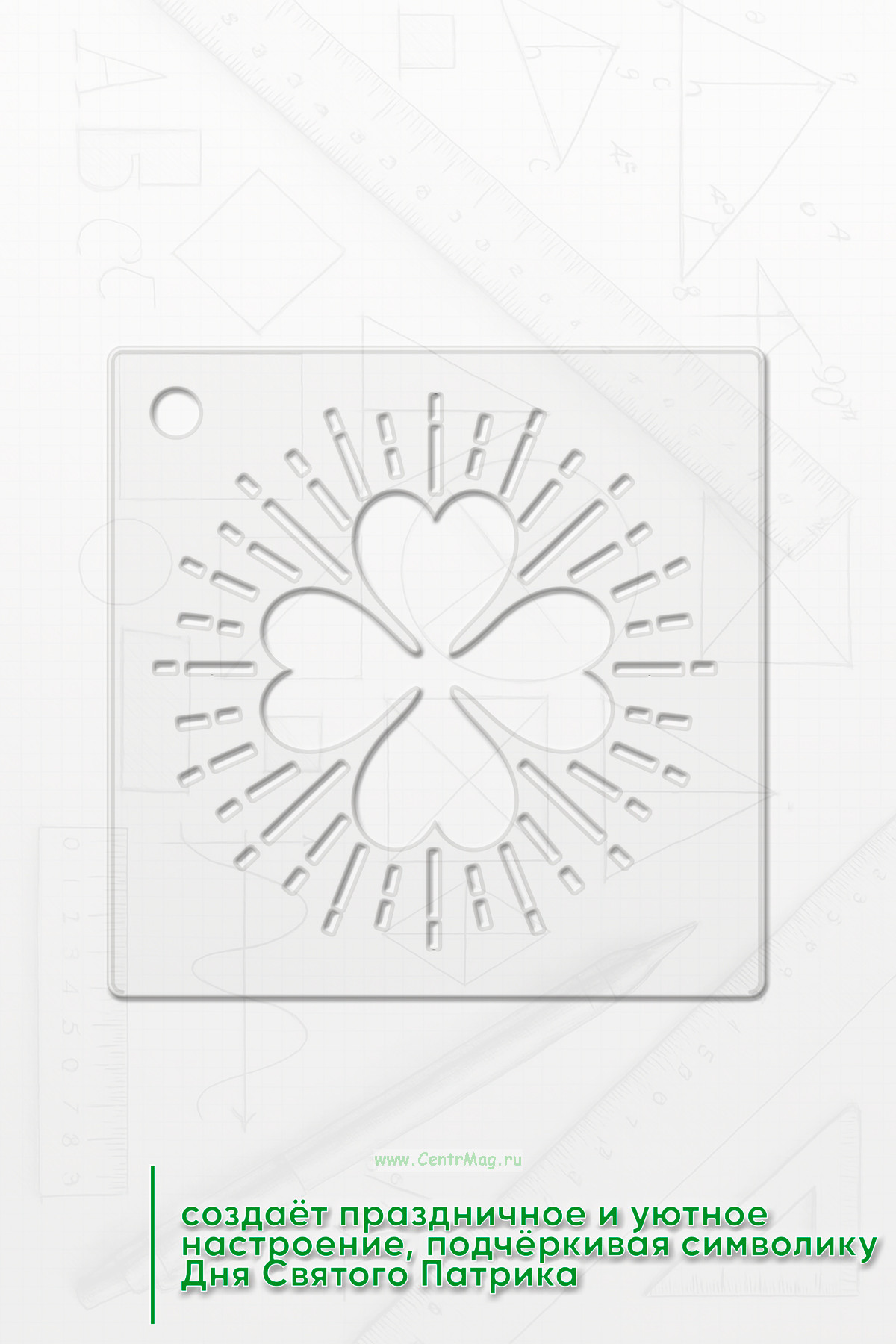 Трафарет создаёт праздничное и уютное настроение, подчёркивая символику Дня Святого Патрика.