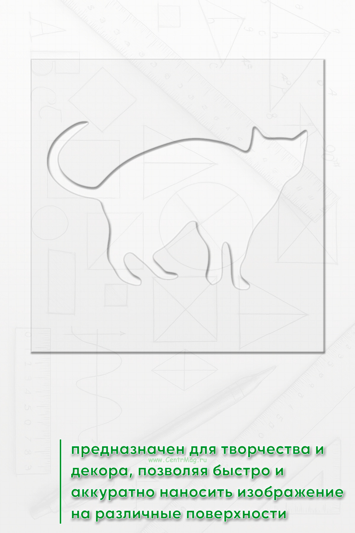 Трафарет предназначен для творчества и декора, позволяя быстро и аккуратно наносить изображение на различные поверхности. Подходит для создания декора на одежде, мебели, стенах, оформления блокнотов и открыток, а также для тематических плакатов и постеров.