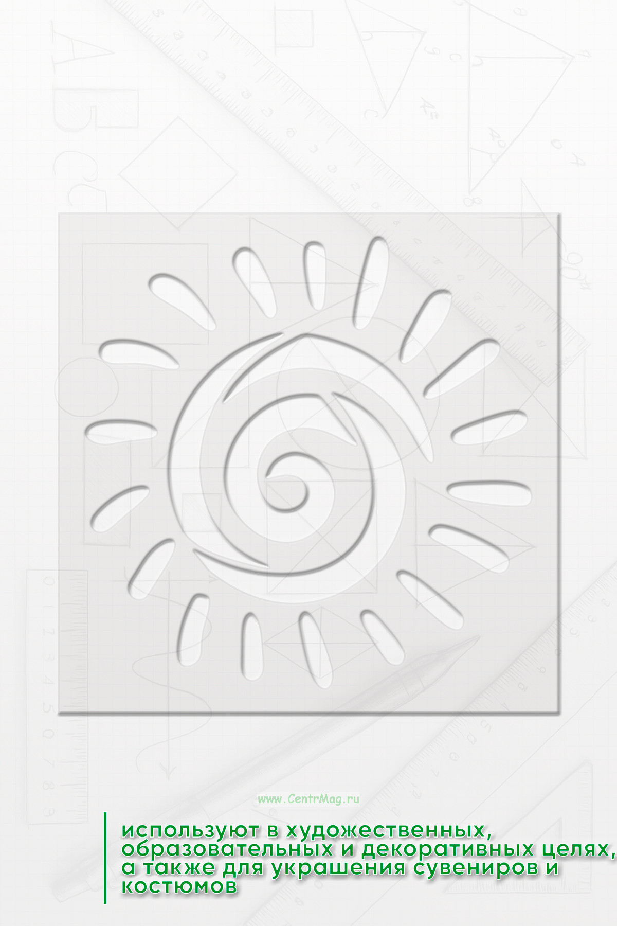 Его используют в художественных, образовательных и декоративных целях, а также для украшения сувениров и костюмов. Такой трафарет помогает быстро и легко воссоздать характерные мотивы этих цивилизаций.