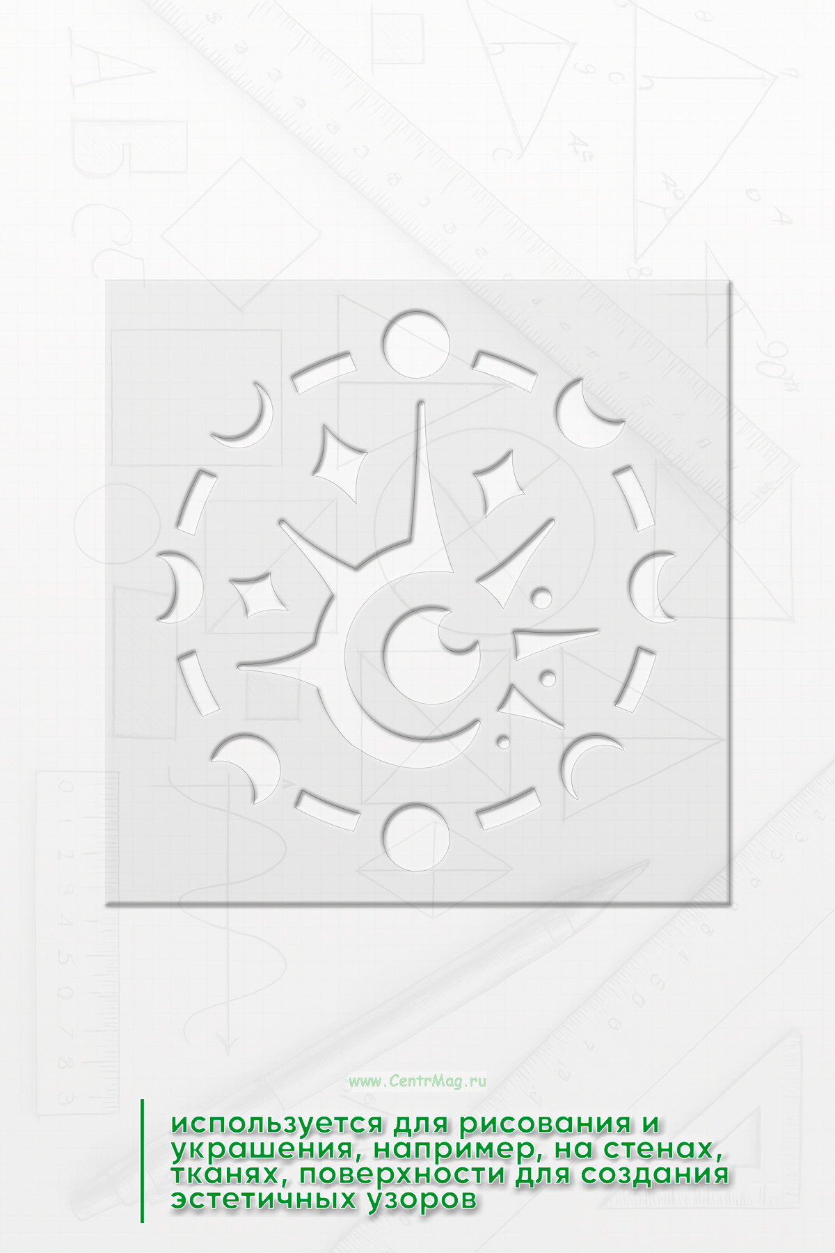 Трафарет "Лунная Мандала" предназначена для художественных и медитативных целей.