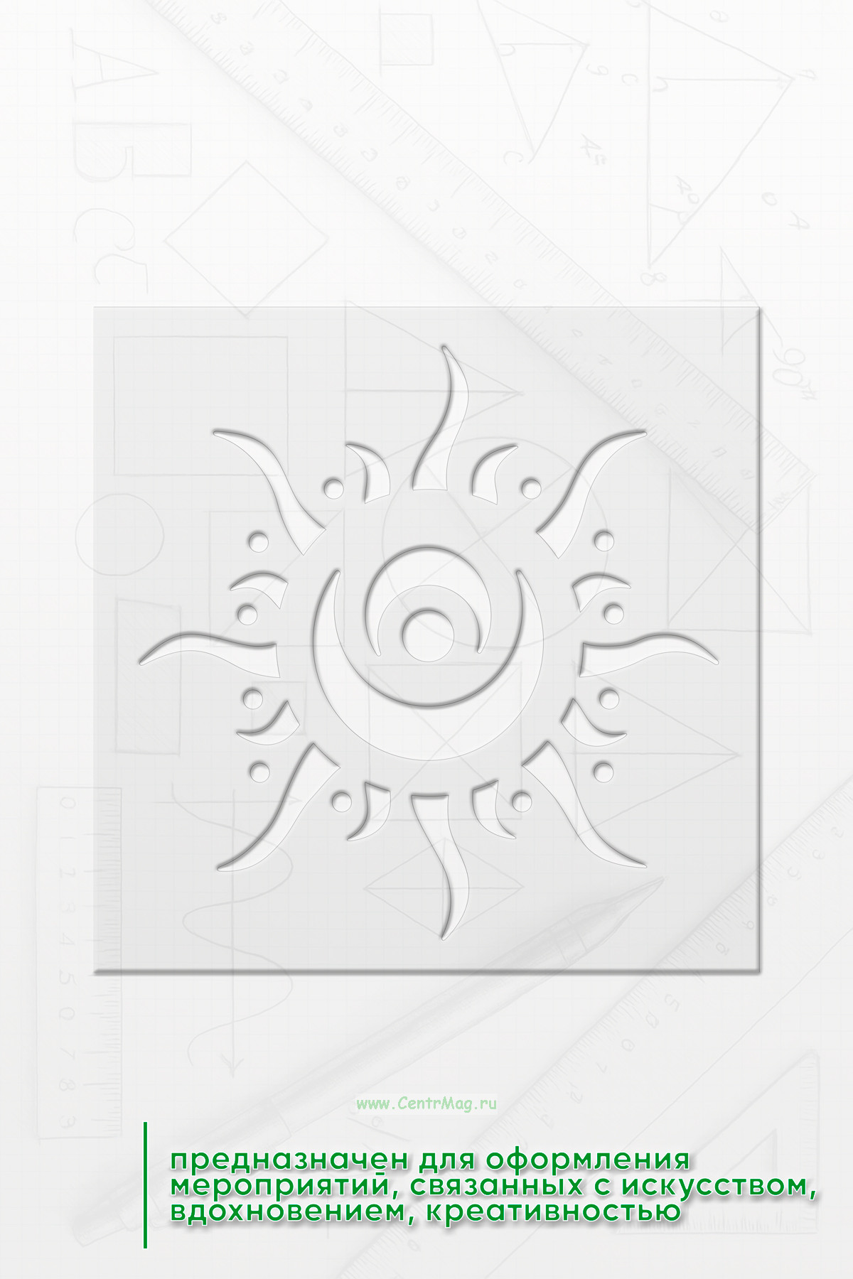 Трафарет "Лунное Солнце" упрощает создание изображений для медитаций, арт-терапии или личного развития, где глаз символизирует внутренний взгляд или интуицию.