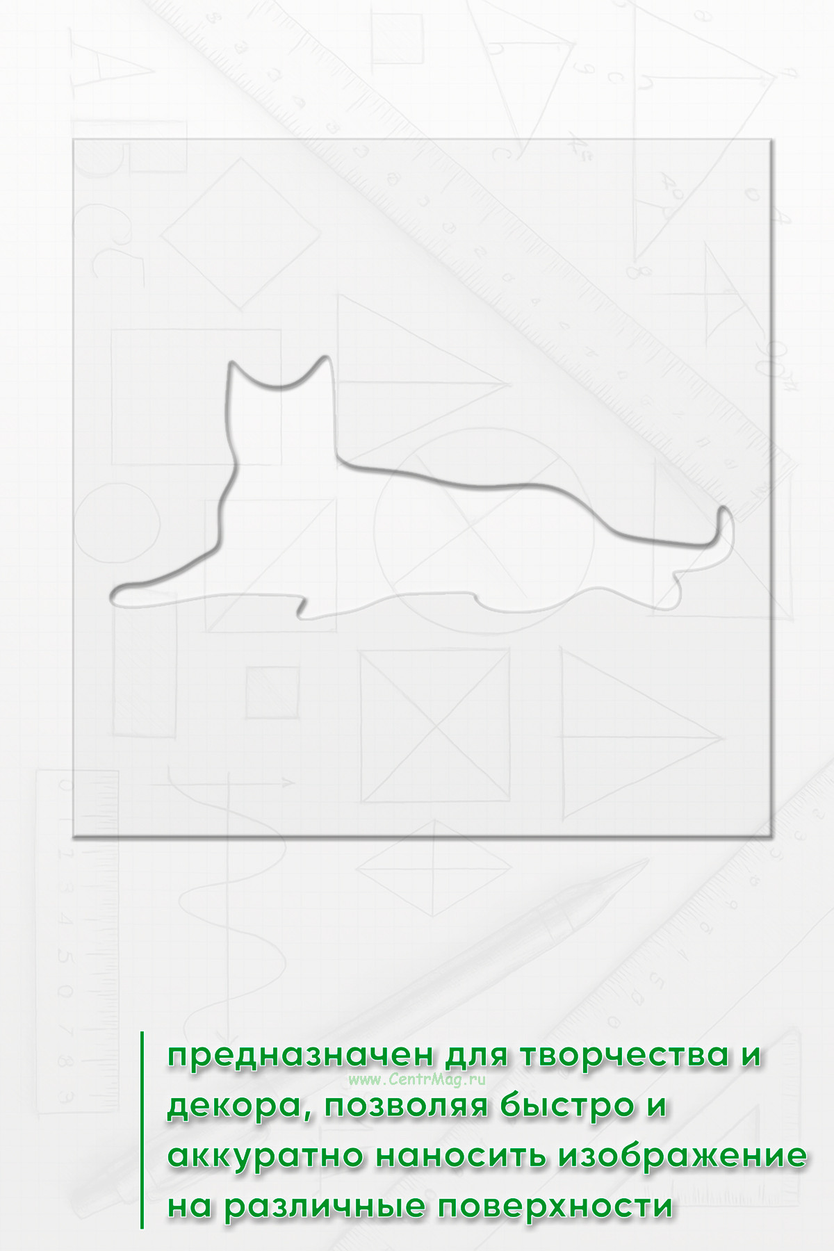 Трафарет предназначен для творчества и декора, позволяя быстро и аккуратно наносить изображение на различные поверхности. Подходит для создания декора на одежде, мебели, стенах, оформления блокнотов и открыток, а также для тематических плакатов и постеров.