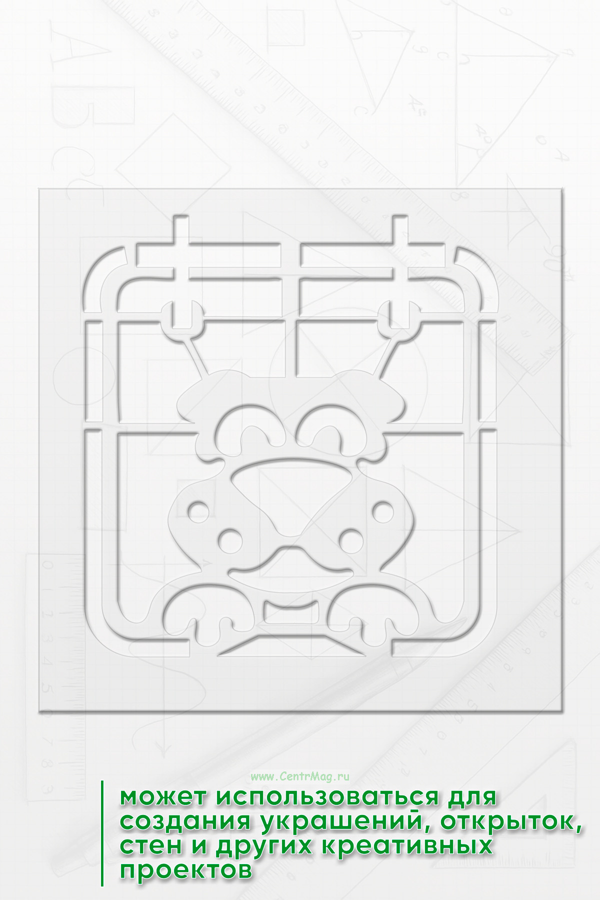 Трафарет предназначен для использования в искусстве, декоре, рукоделии и аэрографии, позволяя быстро и аккуратно наносить изображение на различные поверхности. Он также может использоваться для создания украшений, открыток, стен и других креативных проектов.