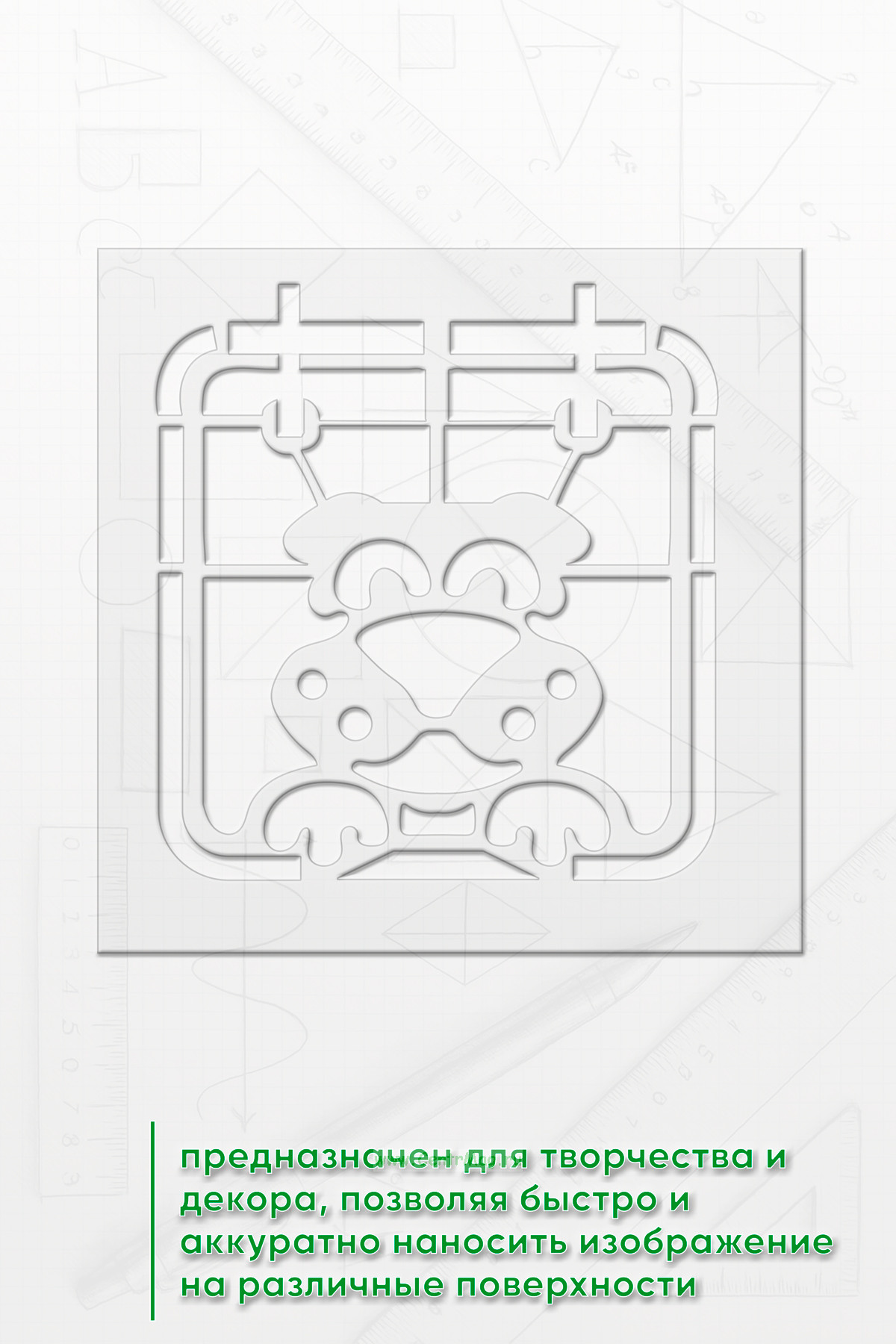 Трафарет предназначен для творчества и декора, позволяя быстро и аккуратно наносить изображение на различные поверхности. Подходит для создания декора на одежде, мебели, стенах, оформления блокнотов и открыток, а также для тематических плакатов и постеров.