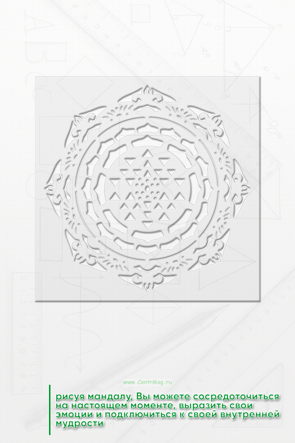 Трафарет для рисования мандалы можно использовать как для медитативной практики, так и для творческого самовыражения. Рисуя мандалу, Вы можете сосредоточиться на настоящем моменте, выразить свои эмоции и подключиться к своей внутренней мудрости.