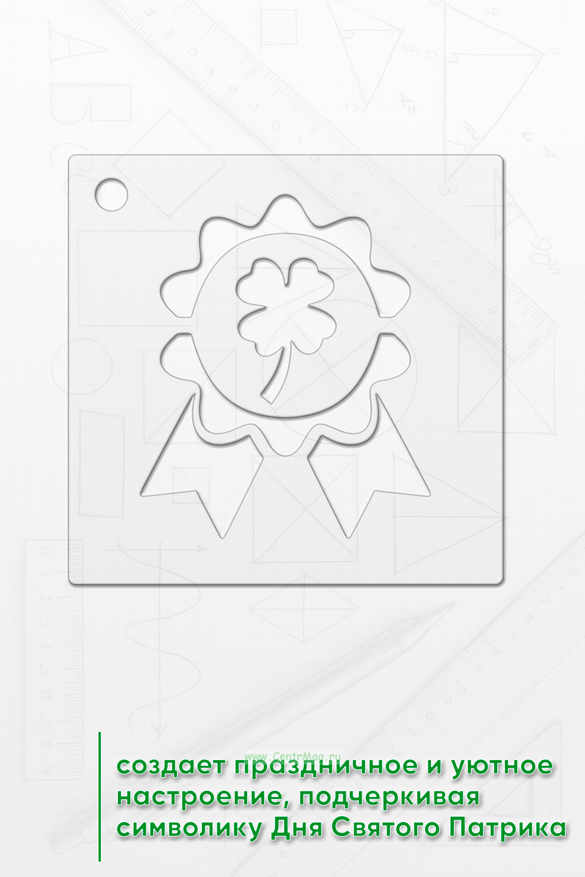 Трафарет создает праздничное и уютное настроение, подчеркивая символику Дня Святого Патрика.