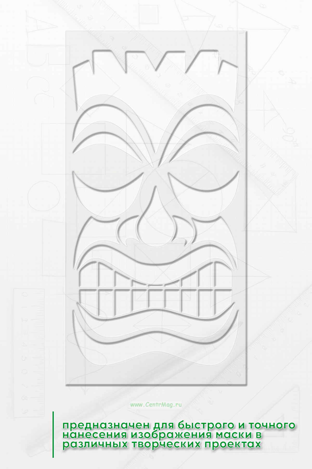 Трафарет "Мистический лик" предназначен для быстрого и точного нанесения изображения маски в различных творческих проектах. Он помогает создать эффект аутентичной древней маски, подчеркивая стиль и атмосферу исторического или фантастического образа.