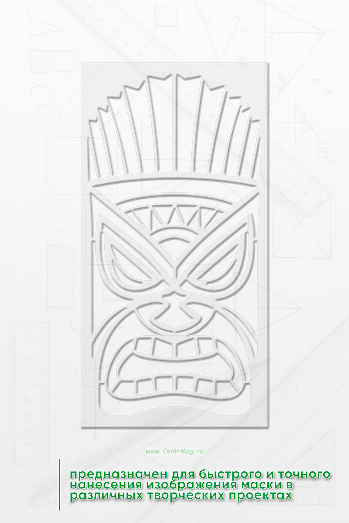 Трафарет "Маска древнего воина" предназначен для быстрого и точного нанесения изображения маски в различных творческих проектах. Он помогает создать эффект аутентичной древней маски, подчеркивая стиль и атмосферу исторического или фантастического образа.