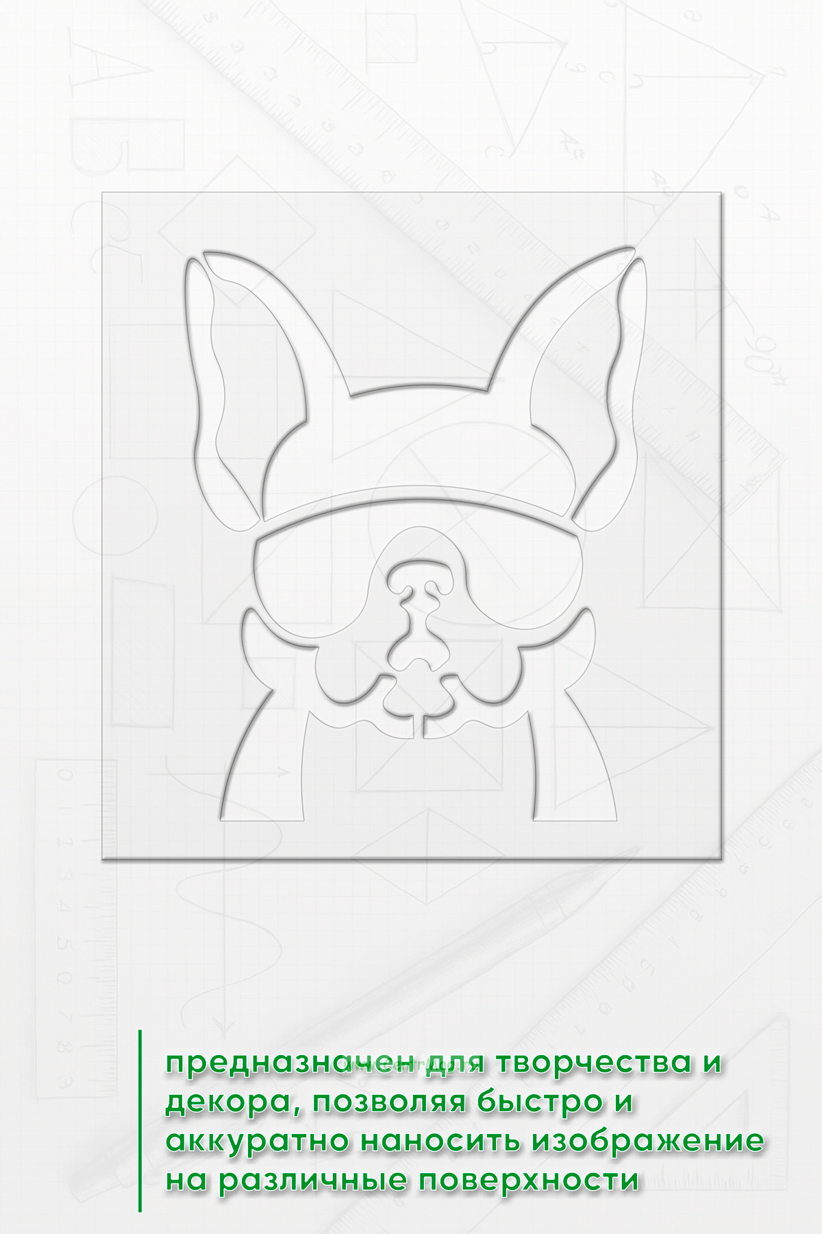 Трафарет предназначен для творчества и декора, позволяя быстро и аккуратно наносить изображение на различные поверхности.Подходит для создания декора на одежде, мебели, стенах, оформления блокнотов и открыток, а также для тематических плакатов и постеров.