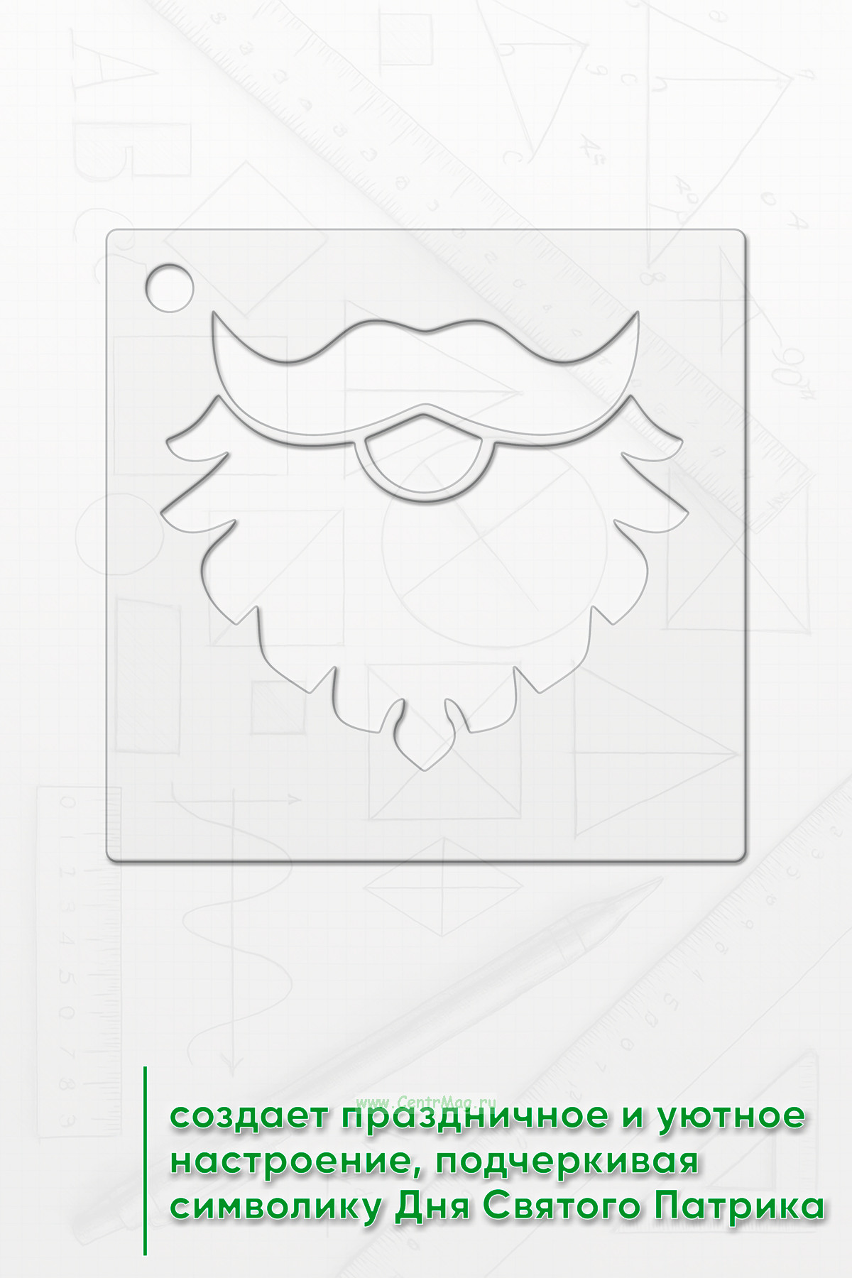 Трафарет создает праздничное и уютное настроение, подчеркивая символику Дня Святого Патрика.