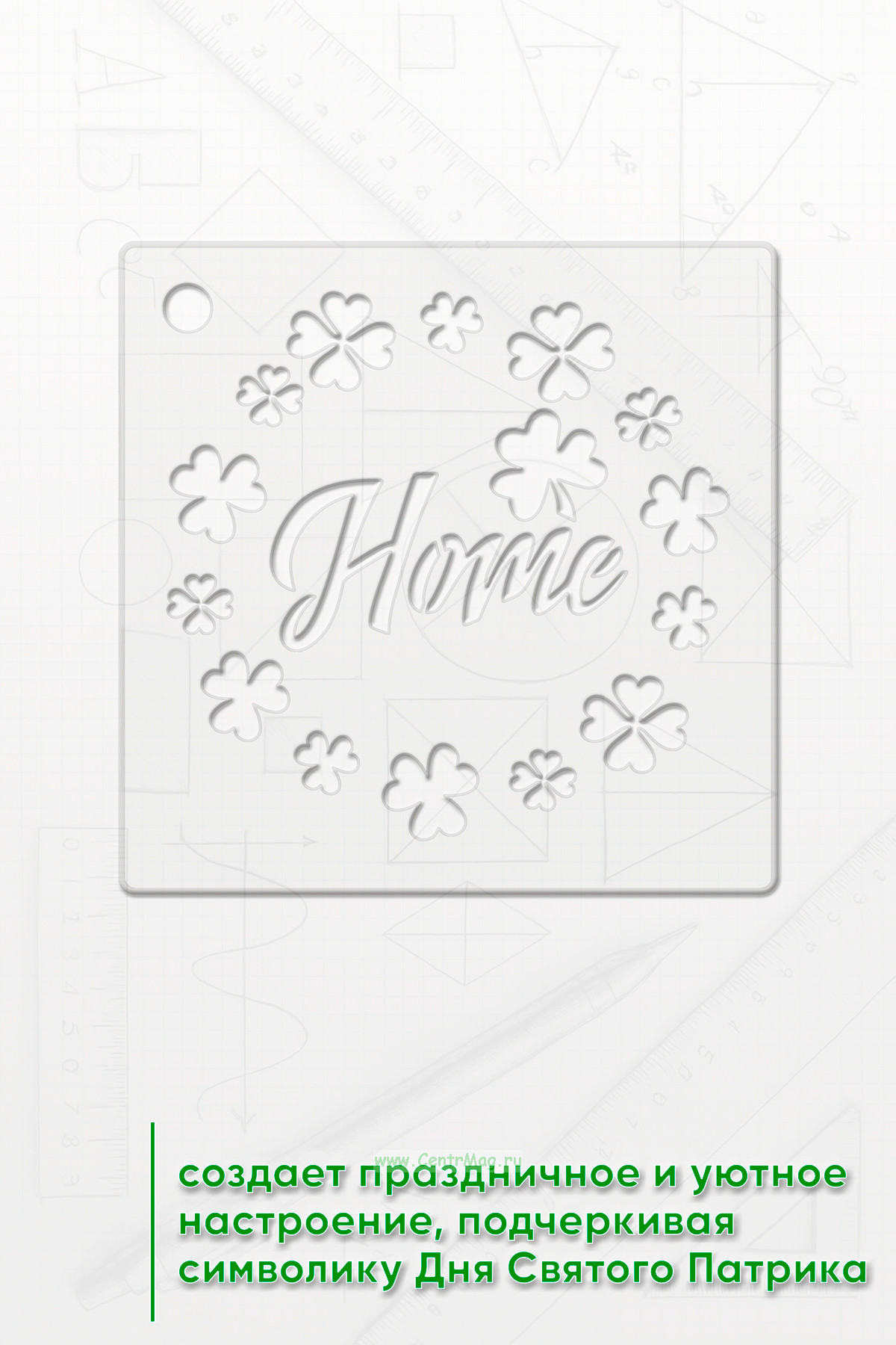 Трафарет создает праздничное и уютное настроение, подчеркивая символику Дня Святого Патрика.