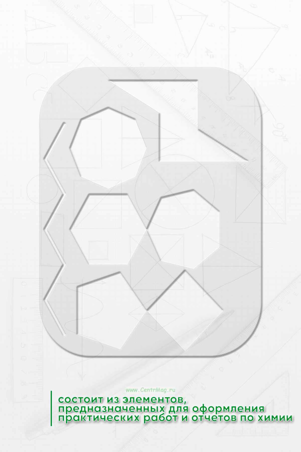 Трафарет состоит из элементов, предназначенных для оформления практических работ и отчетов по химии