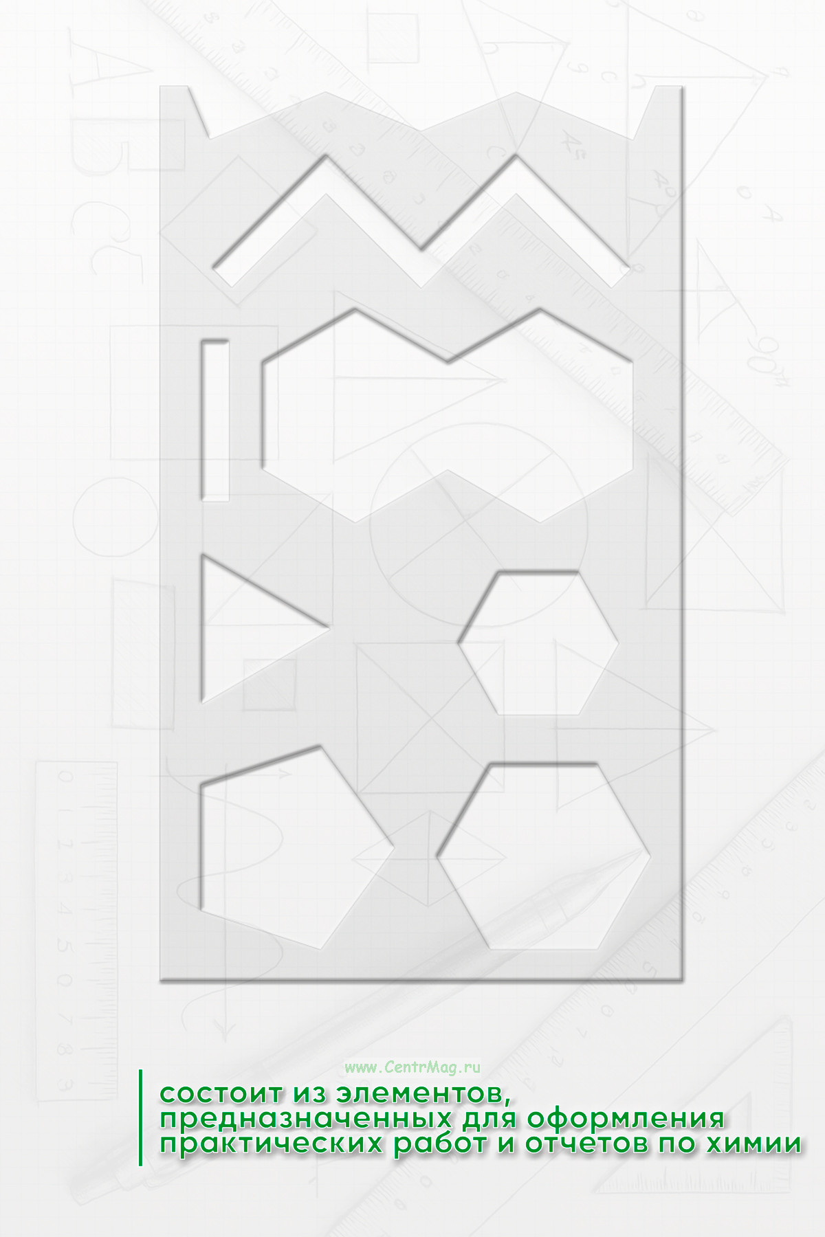 Трафарет состоит из элементов, предназначенных для оформления практических работ и отчетов по химии