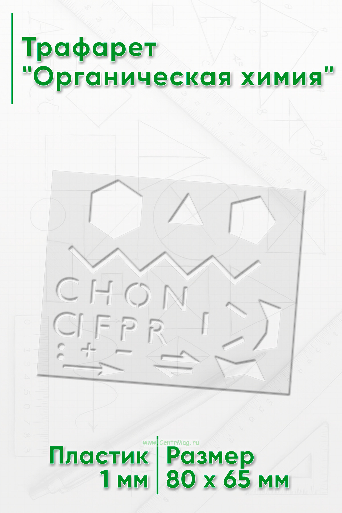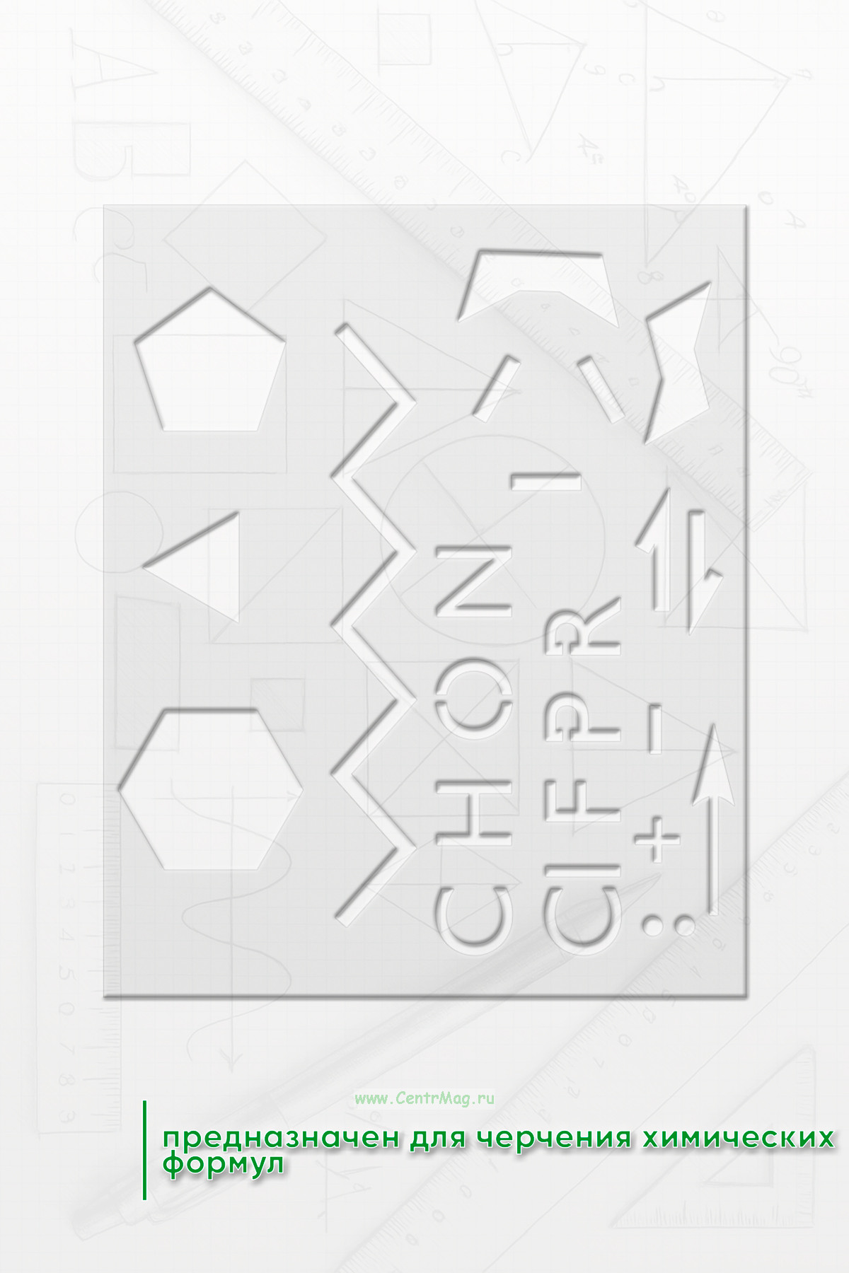 Трафарет предназначен для черчения химических формул. Полезна при изучении органической химии