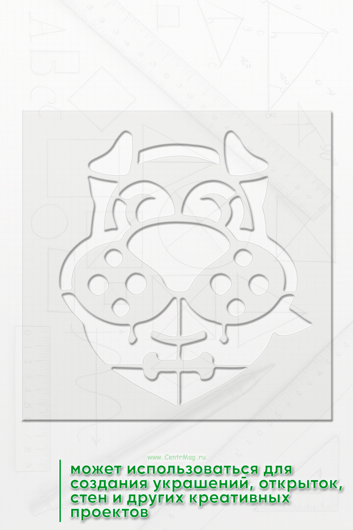 Трафарет предназначен для использования в искусстве, декоре, рукоделии и аэрографии, позволяя быстро и аккуратно наносить изображение на различные поверхности. Он также может использоваться для создания украшений, открыток, стен и других креативных проектов.