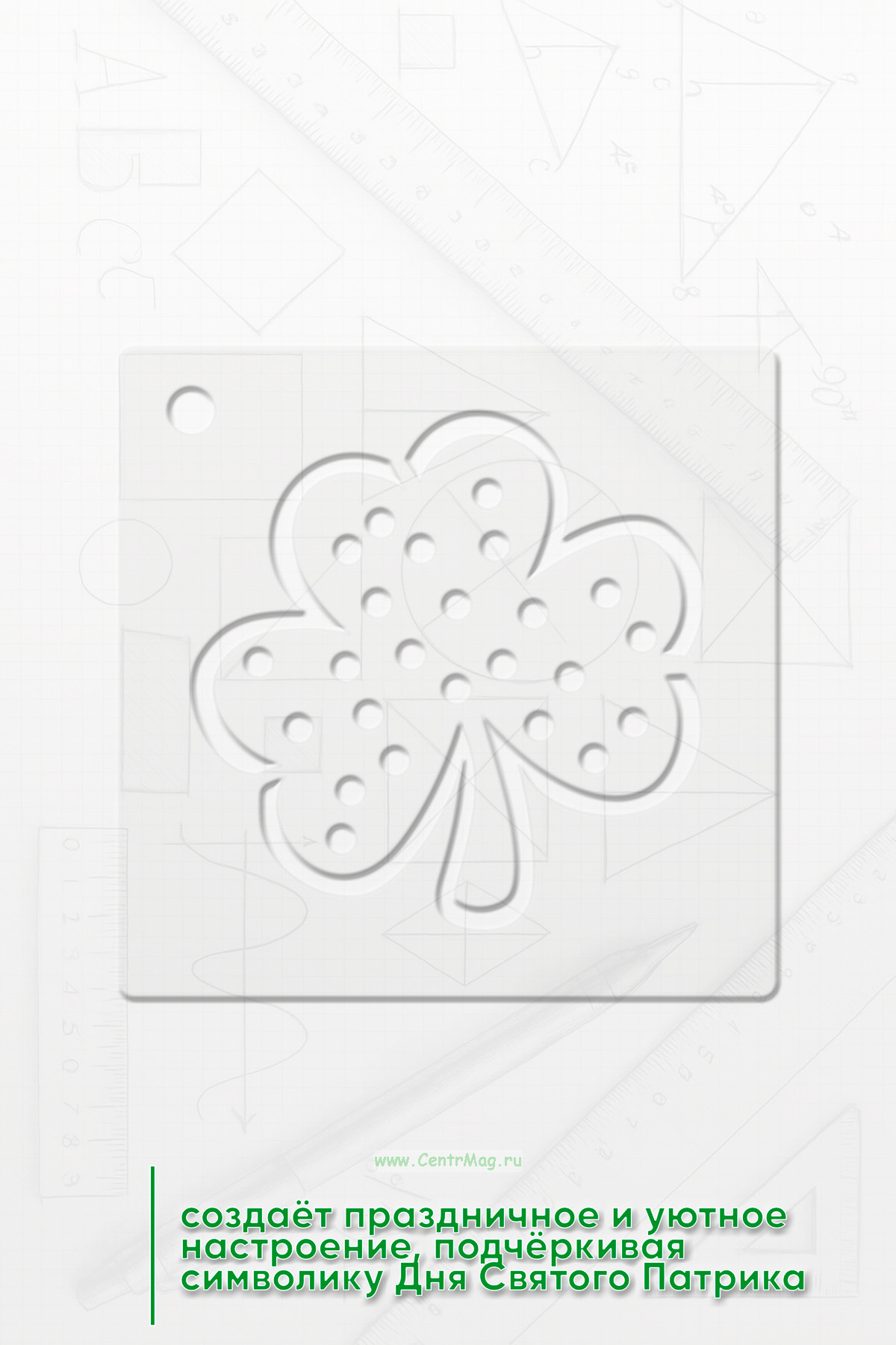 Трафарет создаёт праздничное и уютное настроение, подчёркивая символику Дня Святого Патрика.