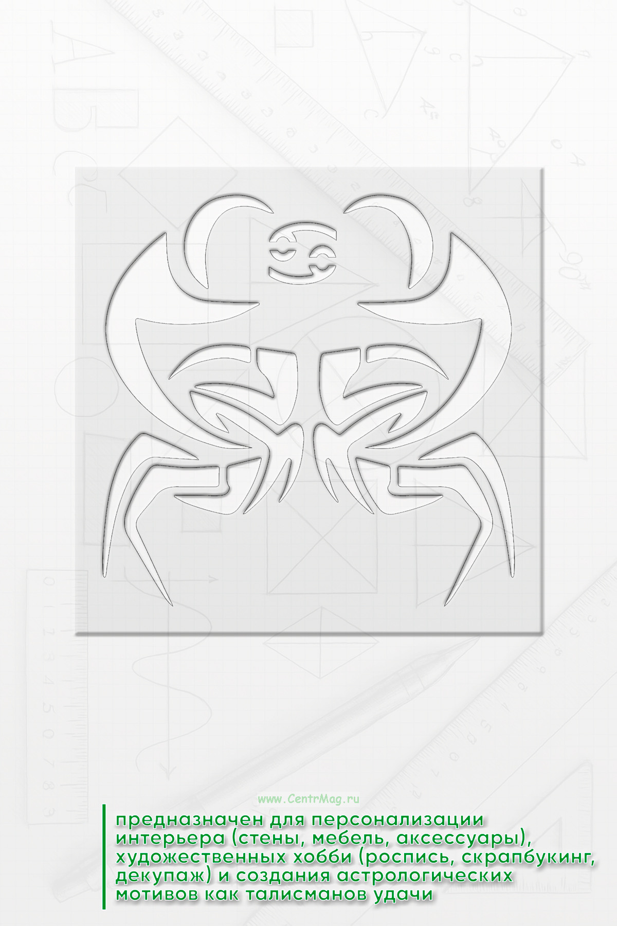 Трафарет предназначен для творческого и декоративного использования, позволяя легко наносить изображения на различные поверхности. Они идеальны для персонализации интерьера (стены, мебель, аксессуары), художественных хобби (роспись, скрапбукинг, декупаж) и создания астрологических мотивов как талисманов удачи.