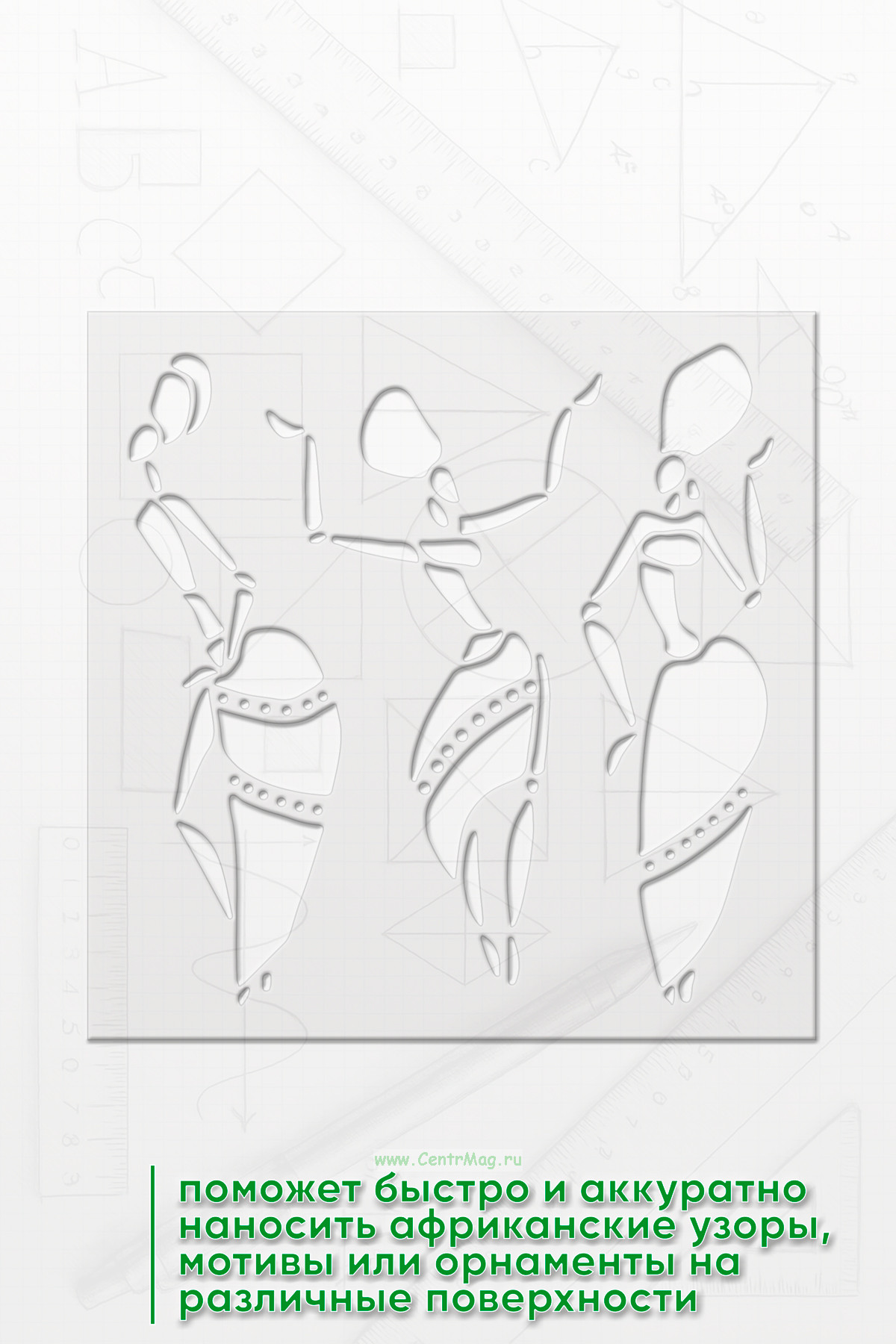 Трафарет "Ритм сестер" обычно используется для создания декоративных узоров, рисунков или элементов в художественной, дизайнерской, или декоративной деятельности. Поможет быстро и аккуратно наносить характерные африканские узоры, мотивы или орнаменты на различные поверхности, такие как стены, ткани, бумага или другие материалы.