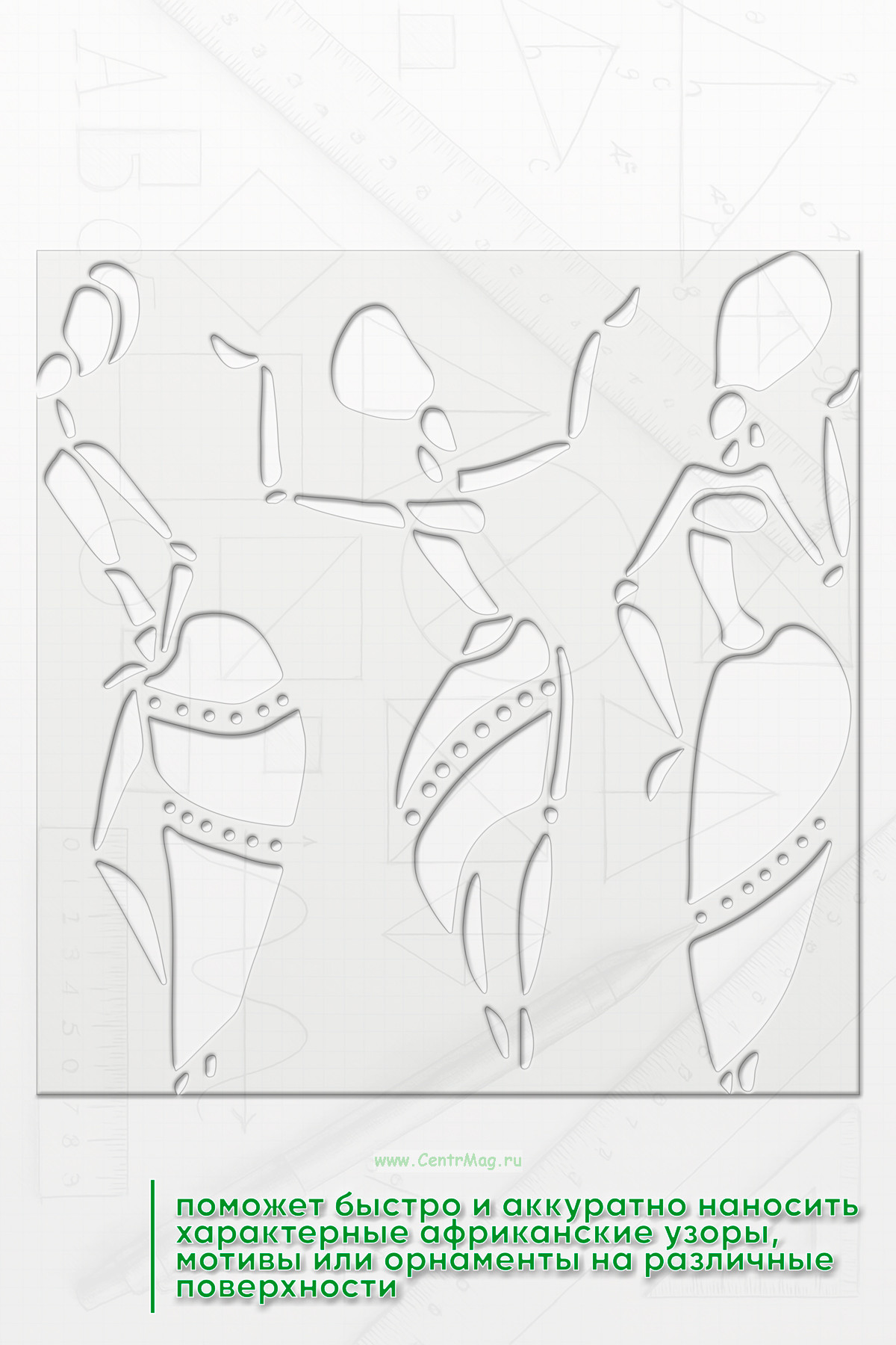 Трафарет "Ритм сестёр" обычно используется для создания декоративных узоров, рисунков или элементов в художественной, дизайнерской, или декоративной деятельности. Поможет быстро и аккуратно наносить характерные африканские узоры, мотивы или орнаменты на различные поверхности, такие как стены, ткани, бумага или другие материалы.