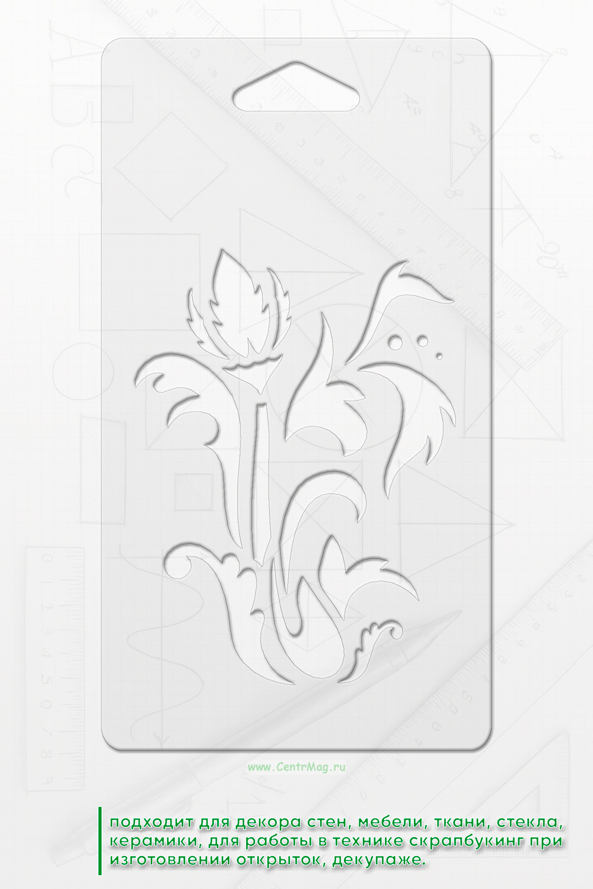 Трафарет подходит для декора стен, мебели, ткани, стекла, керамики, для работы в технике скрапбукинг при изготовлении открыток, декупаже.
