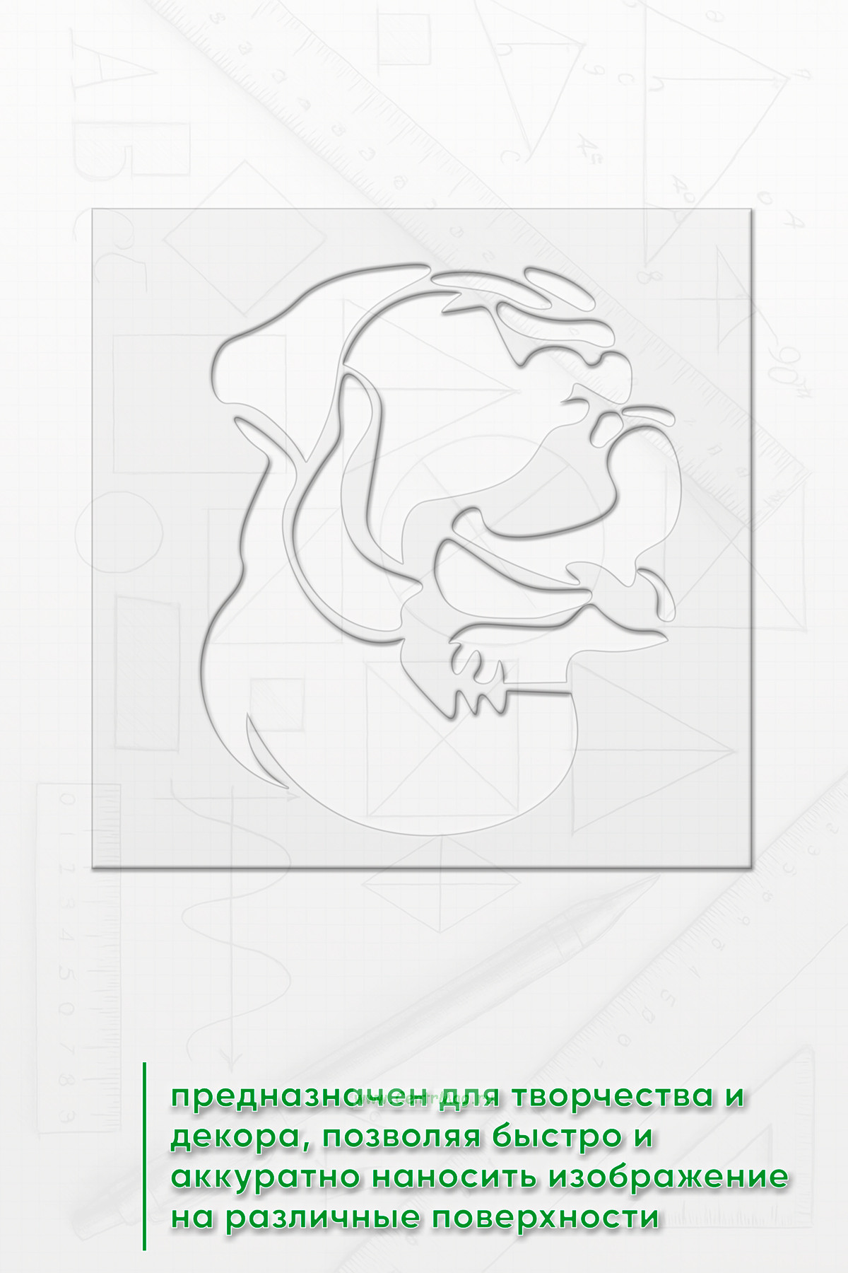 Трафарет предназначен для творчества и декора, позволяя быстро и аккуратно наносить изображение на различные поверхности.Подходит для создания декора на одежде, мебели, стенах, оформления блокнотов и открыток, а также для тематических плакатов и постеров.