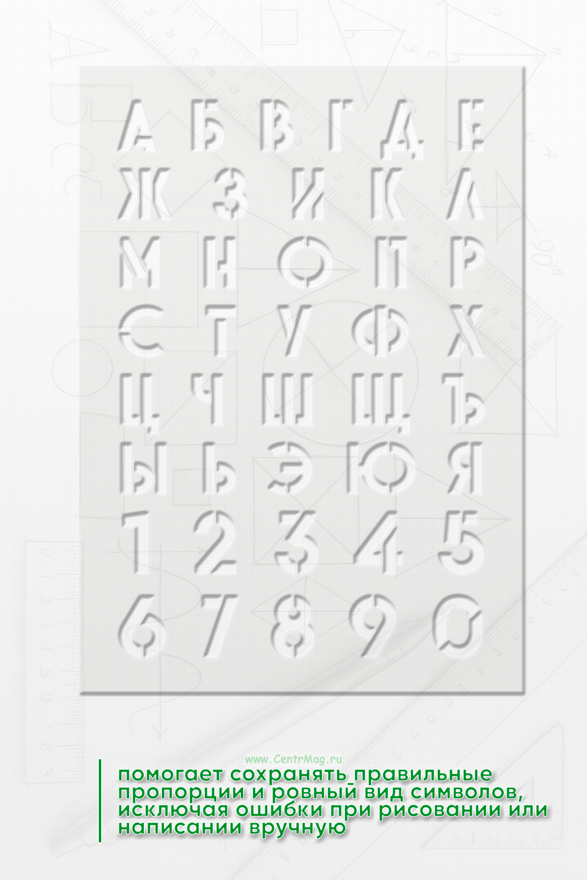Трафарет «Русский алфавит и Цифры» предназначен для удобного и аккуратного нанесения букв русского алфавита и цифровых символов на различные поверхности.