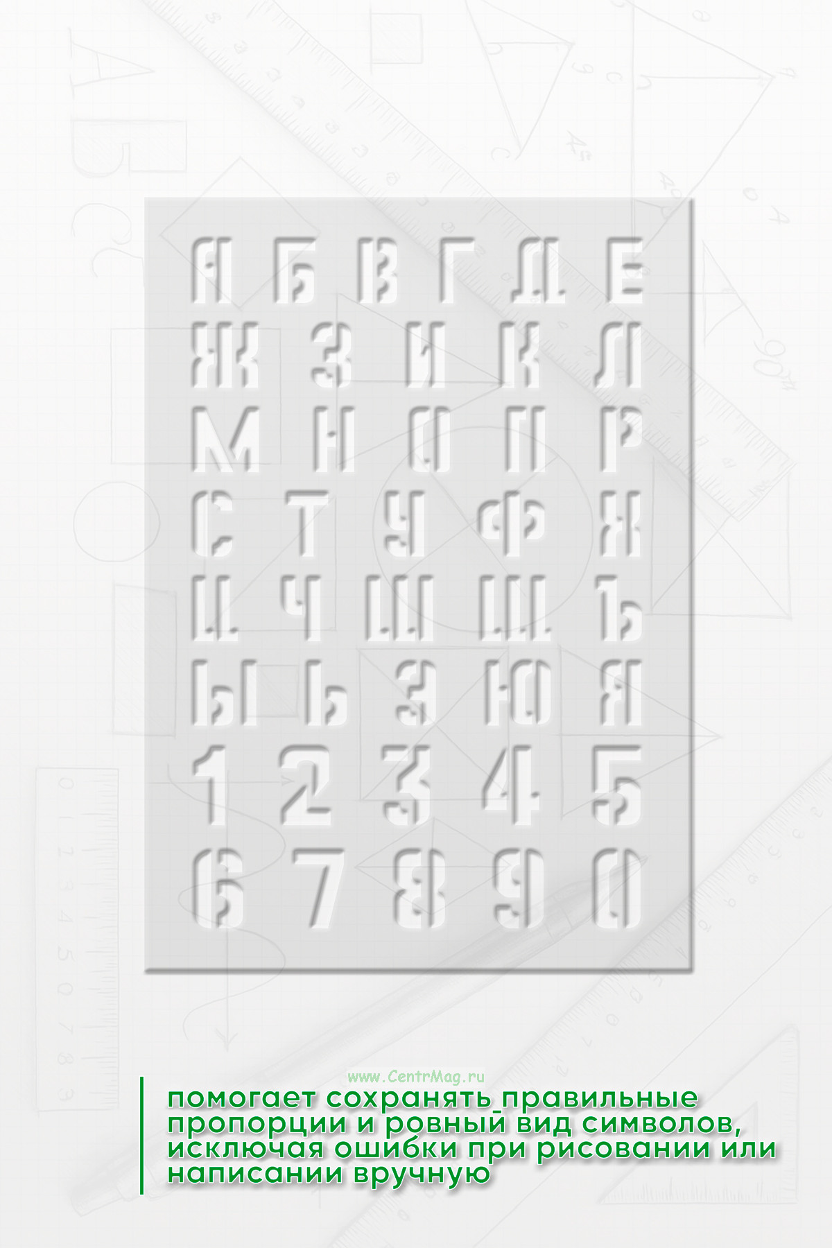 Трафарет помогает сохранять правильные пропорции и ровный вид символов, исключая ошибки при рисовании или написании вручную.