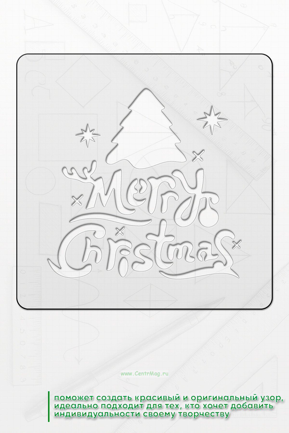 Трафарет поможет создать красивый и оригинальный узор. Идеально подходит для тех, кто хочет добавить индивидуальности своему творчеству в Новогодние праздники. Можно использовать для украшения открыток, альбомов, коробок, шкатулок, предметов мебели и даже интерьера
