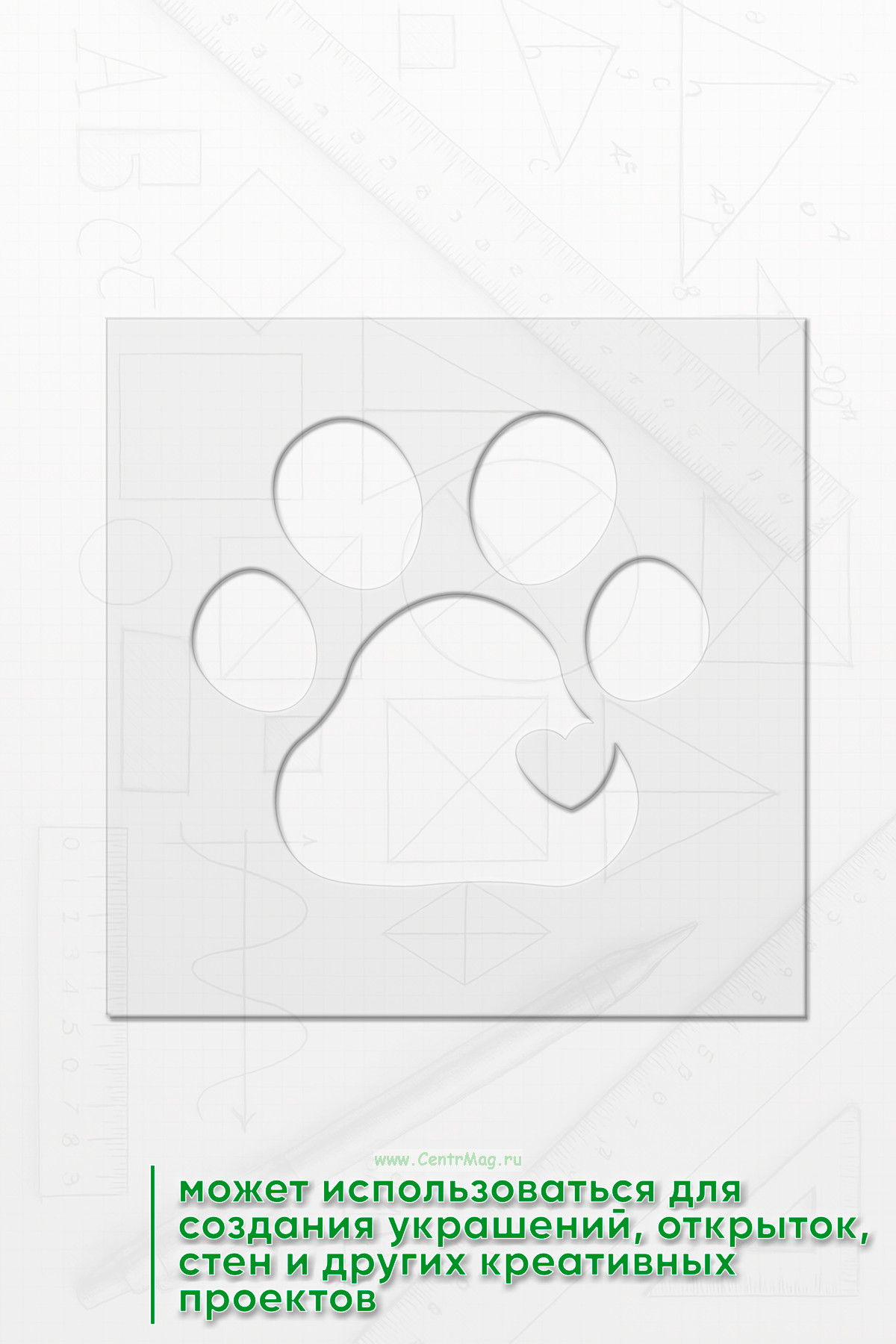 Трафарет предназначен для использования в искусстве, декоре, рукоделии и аэрографии, позволяя быстро и аккуратно наносить изображение на различные поверхности. Он также может использоваться для создания украшений, открыток, стен и других креативных проектов.