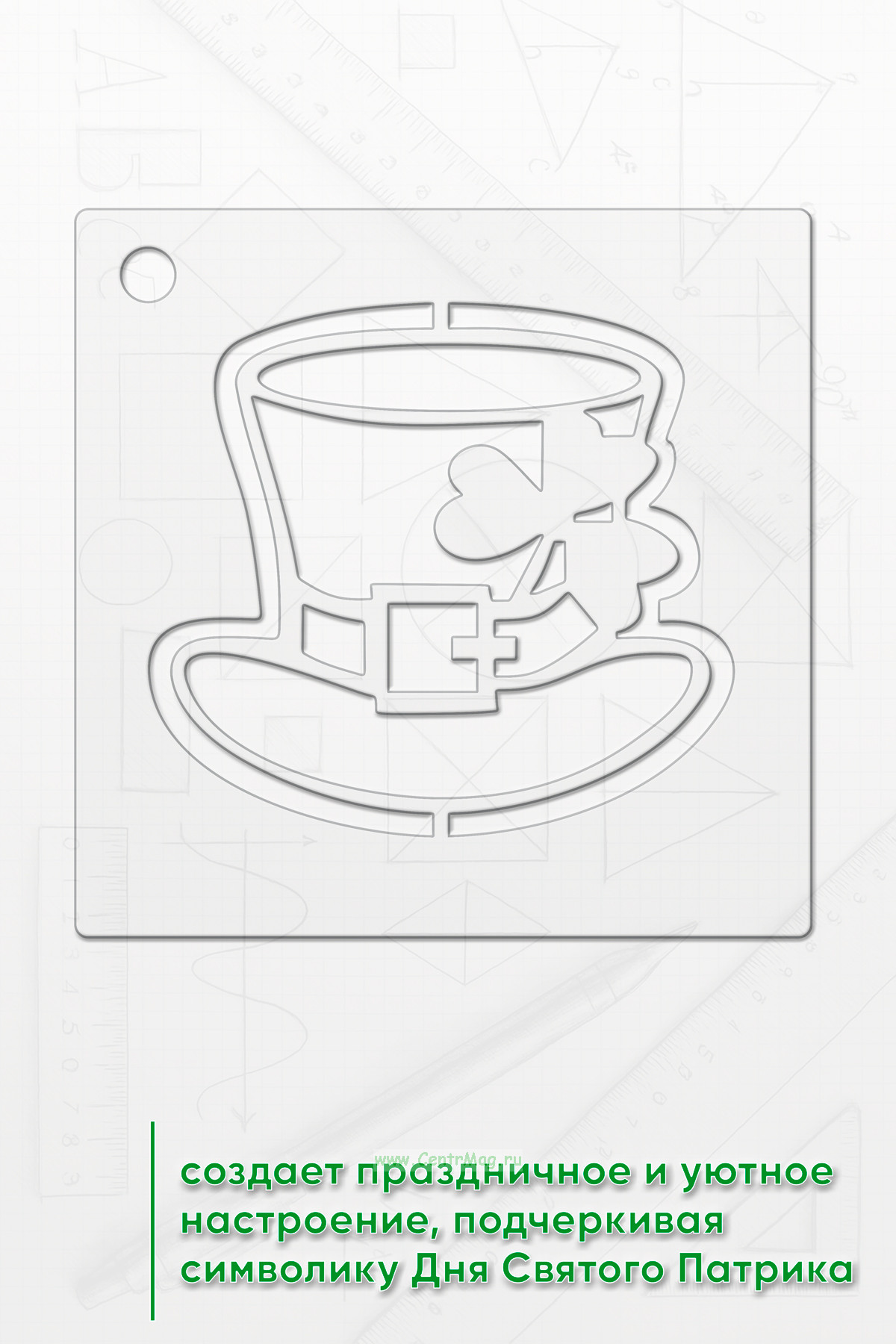 Трафарет создает праздничное и уютное настроение, подчеркивая символику Дня Святого Патрика.