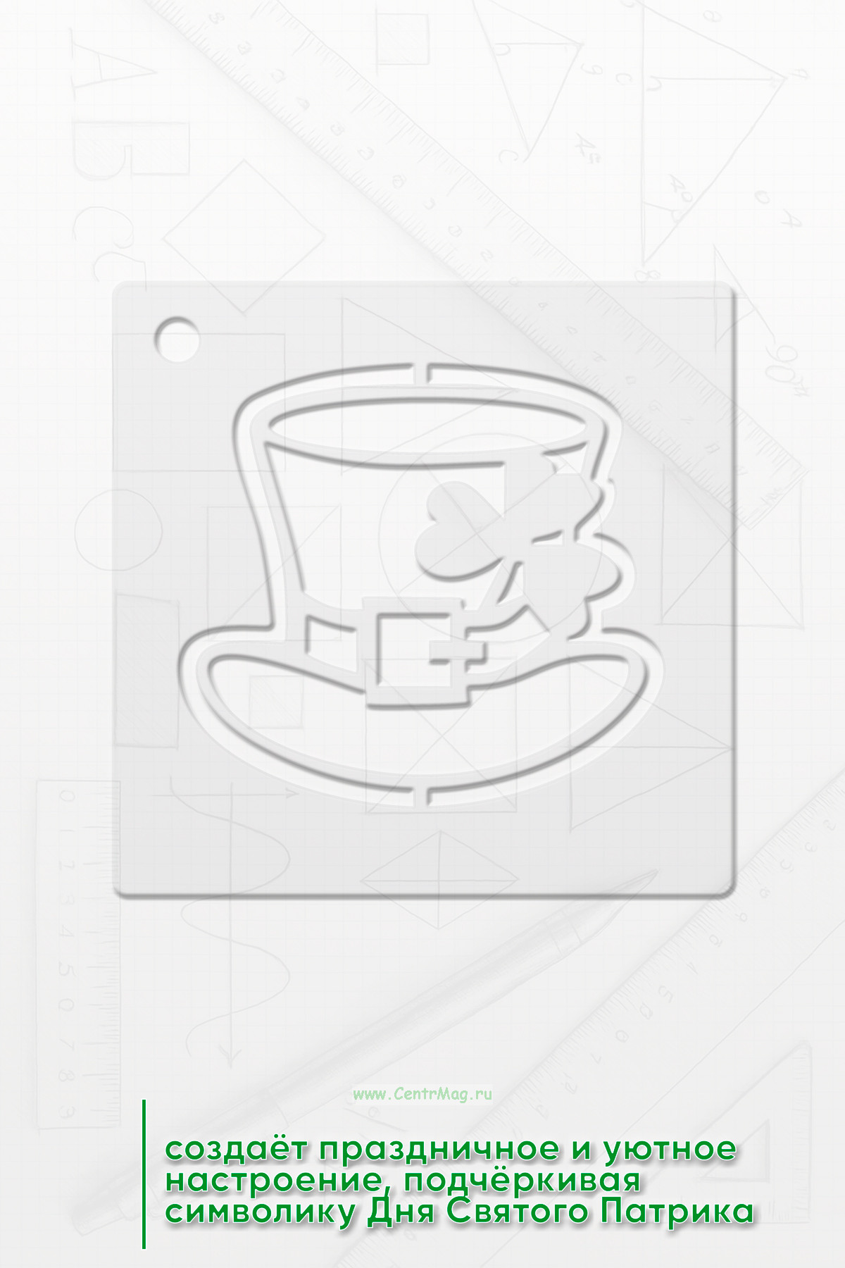 Трафарет создаёт праздничное и уютное настроение, подчёркивая символику Дня Святого Патрика.