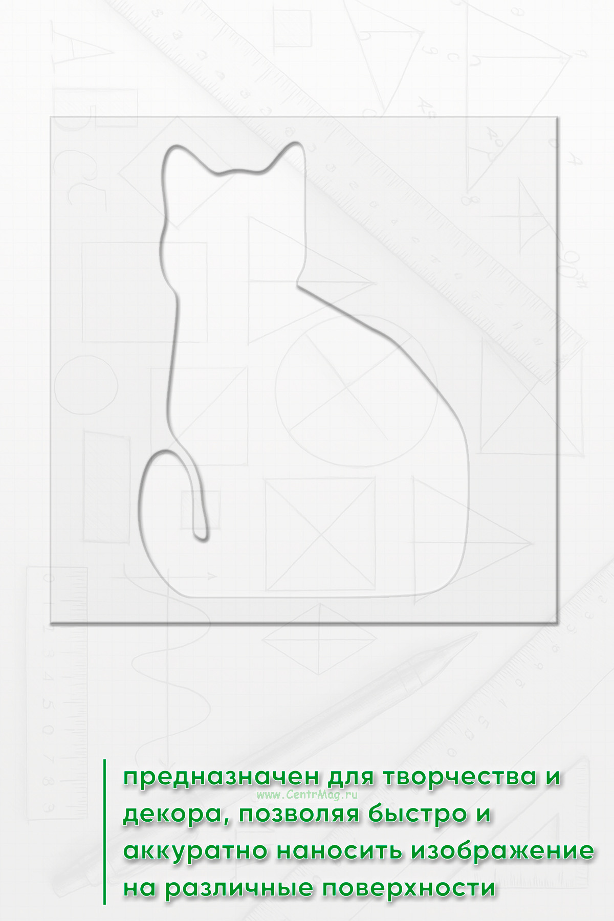 Трафарет предназначен для творчества и декора, позволяя быстро и аккуратно наносить изображение на различные поверхности. Подходит для создания декора на одежде, мебели, стенах, оформления блокнотов и открыток, а также для тематических плакатов и постеров.