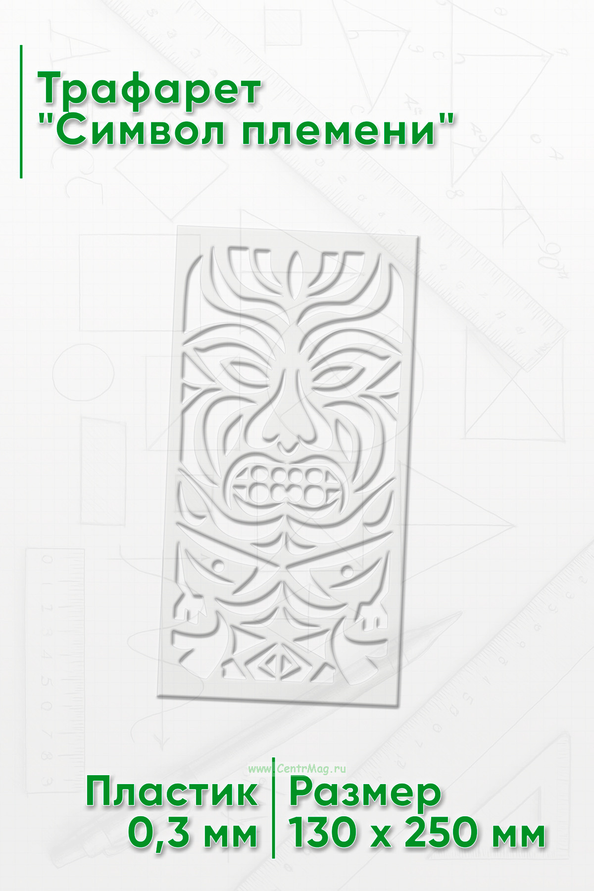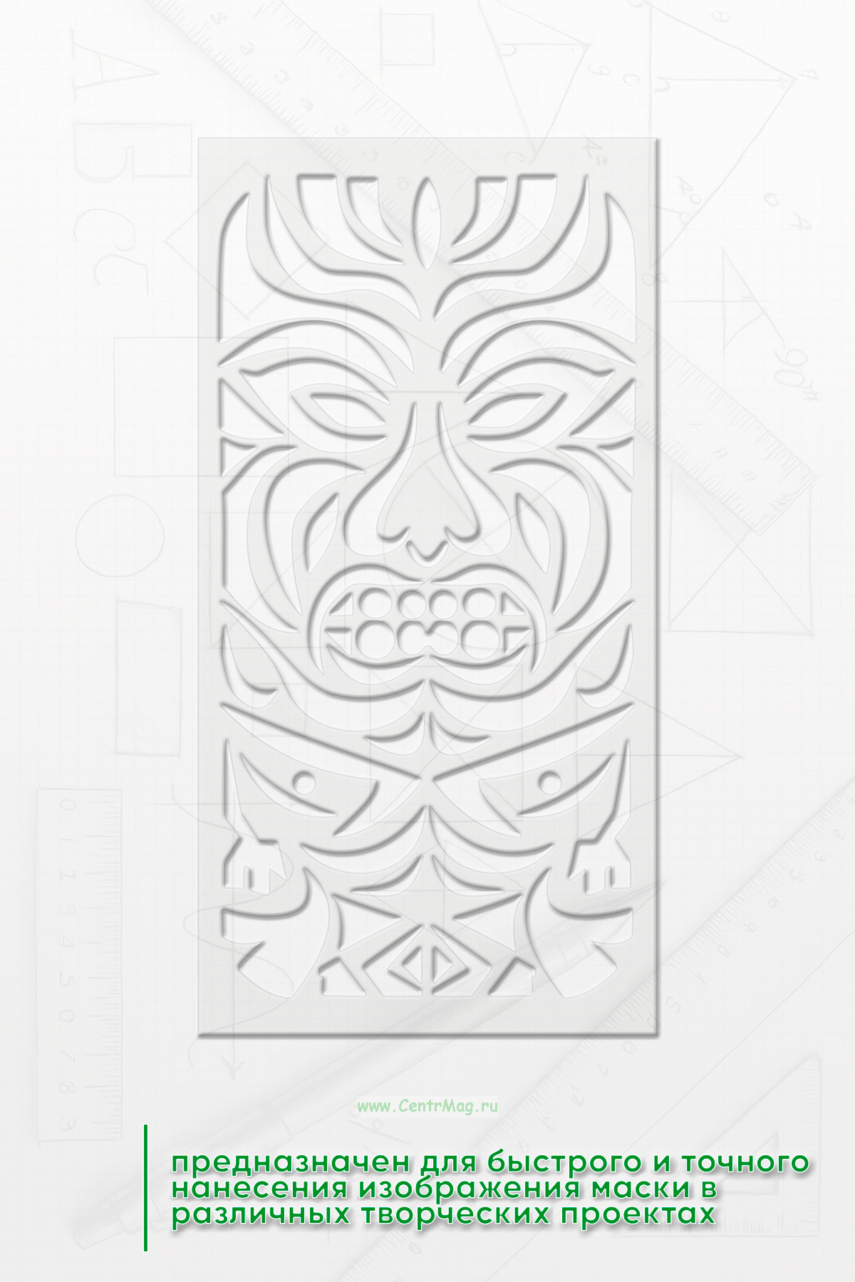 Трафарет "Символ племени" предназначен для быстрого и точного нанесения изображения маски в различных творческих проектах. Он помогает создать эффект аутентичной древней маски, подчеркивая стиль и атмосферу исторического или фантастического образа.