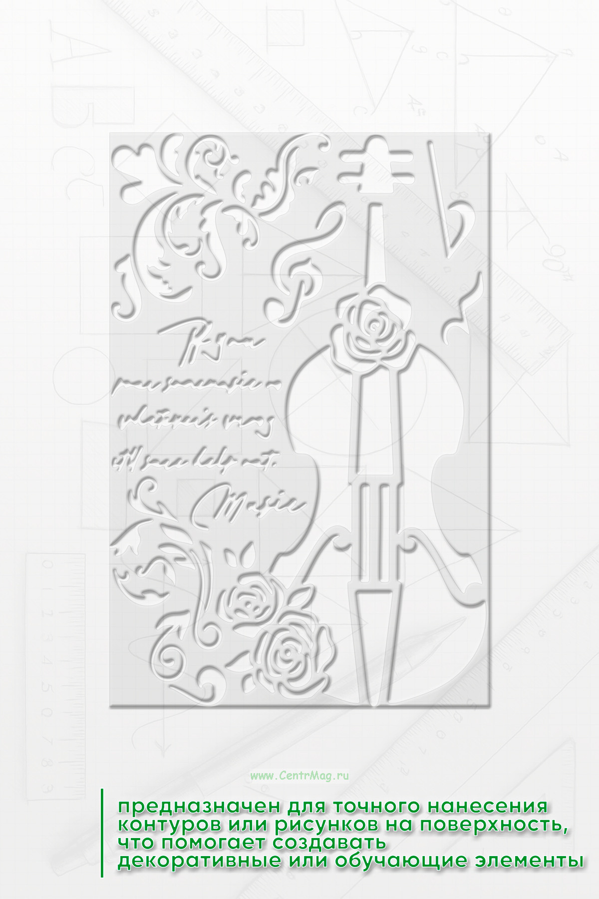 Трафарет предназначен для легкого и точного нанесения контуров или рисунков на поверхность, что помогает создавать декоративные или обучающие элементы. Он используется как в художественных, так и в образовательных целях, а также при изготовлении украшений или аксессуаров с гитарной тематикой.