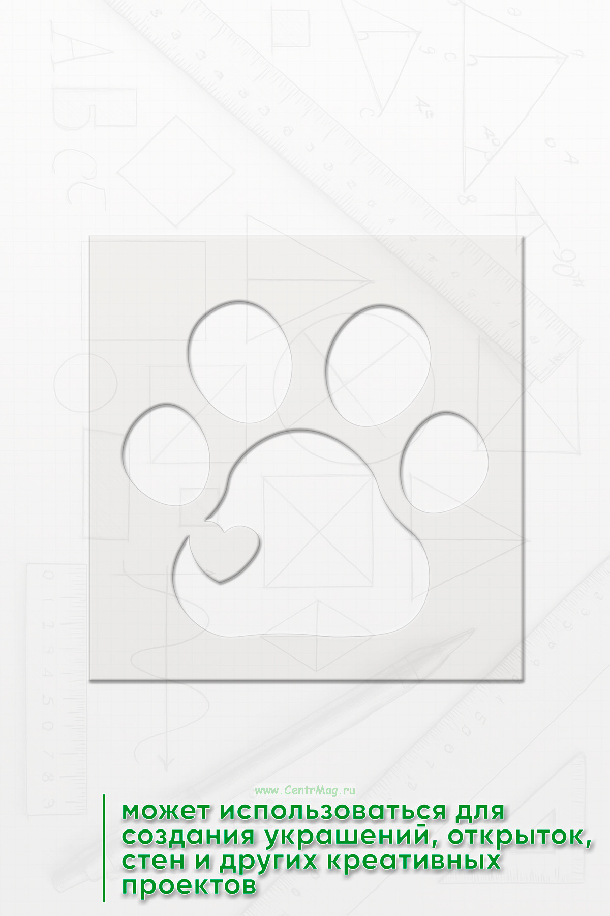 Трафарет предназначен для использования в искусстве, декоре, рукоделии и аэрографии, позволяя быстро и аккуратно наносить изображение на различные поверхности. Он также может использоваться для создания украшений, открыток, стен и других креативных проектов.