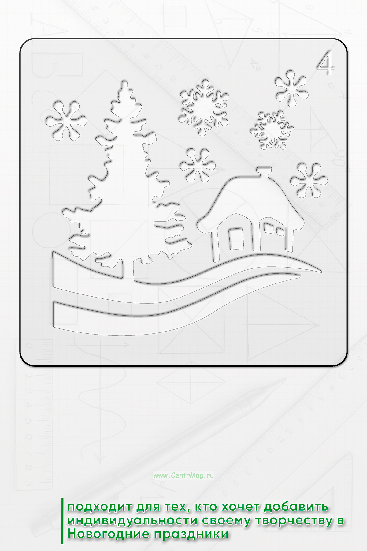 Трафарет поможет создать красивый и оригинальный узор. Идеально подходит для тех, кто хочет добавить индивидуальности своему творчеству в Новогодние праздники. Можно использовать для украшения открыток, альбомов, коробок, шкатулок, предметов мебели и даже интерьера