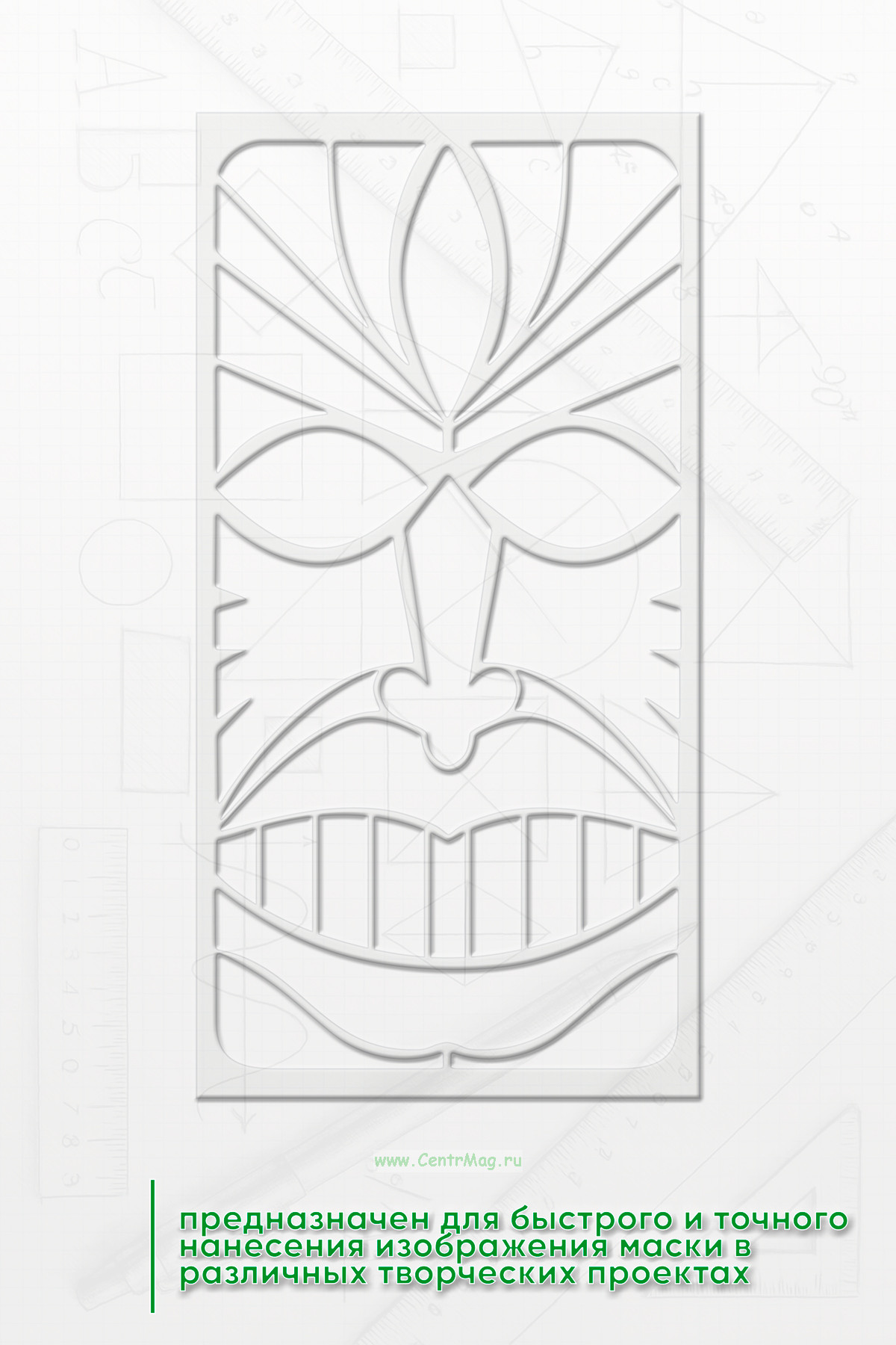 Трафарет "Солнечный страж" предназначен для быстрого и точного нанесения изображения маски в различных творческих проектах. Он помогает создать эффект аутентичной древней маски, подчеркивая стиль и атмосферу исторического или фантастического образа.
