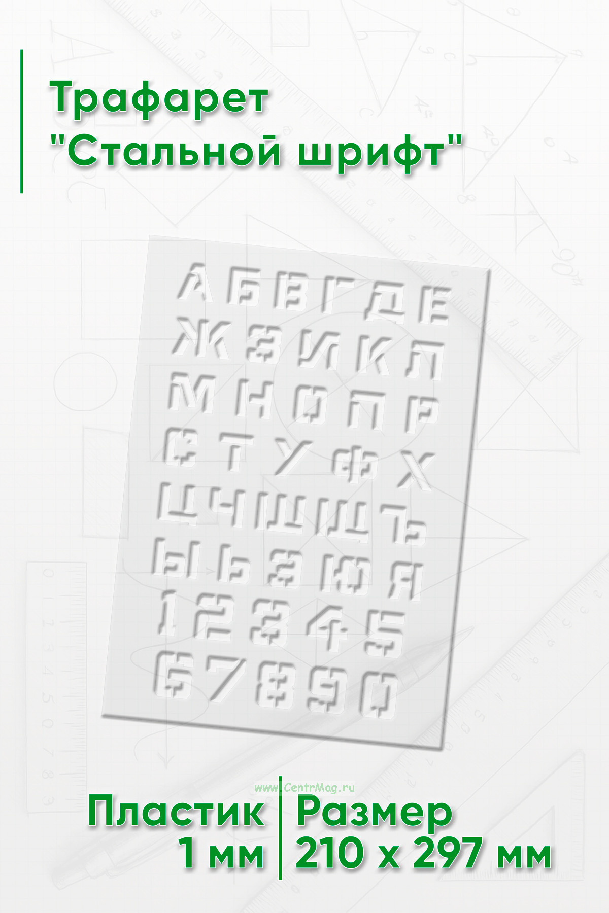 Трафарет "Стальной шрифт с наклоном" (360 руб.)